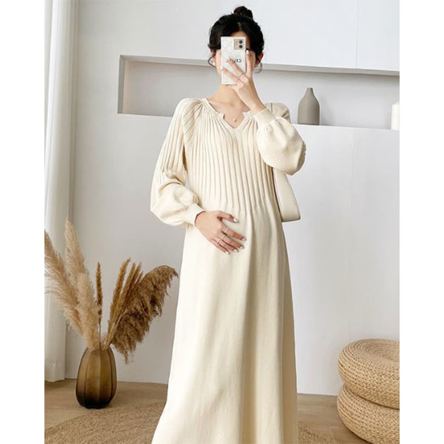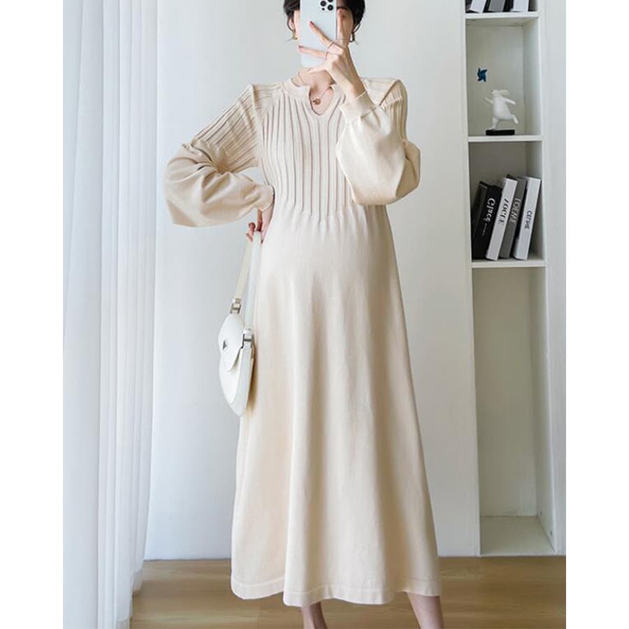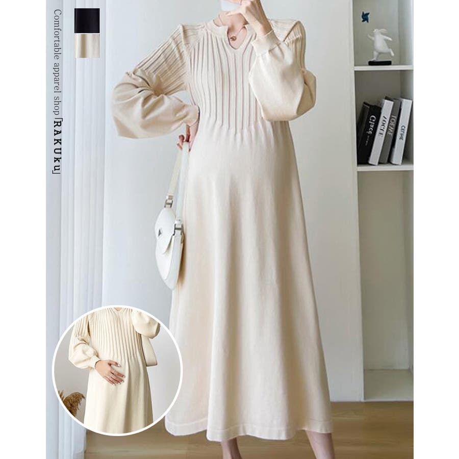 マタニティ ワンピース 秋冬 暖か ロング ニットワンピース マタニティウェア 妊婦服 ウエア 長袖 ワンピ ニット シンプル 無地 通勤 オフィス フォーマル