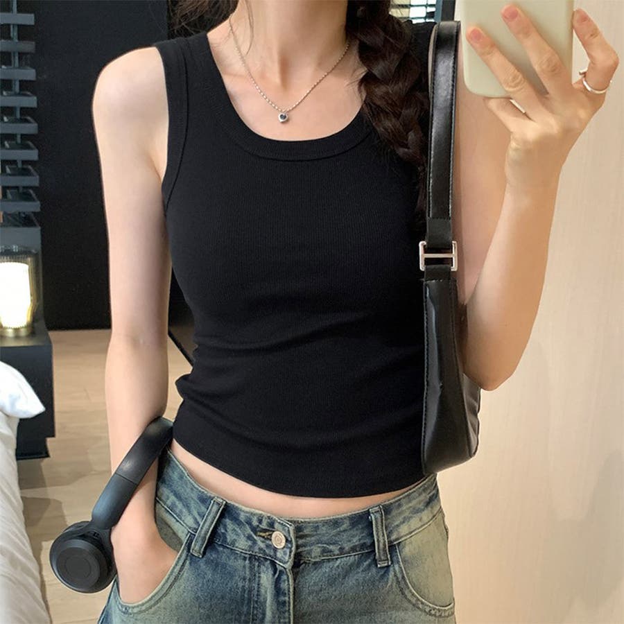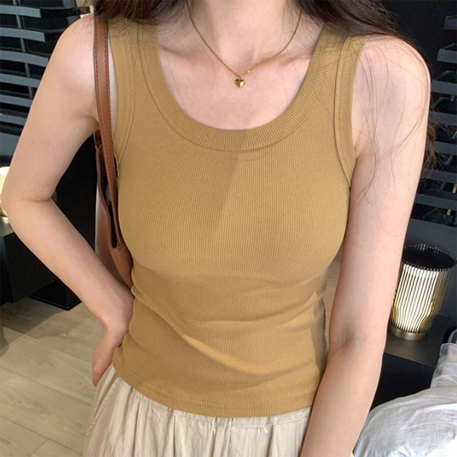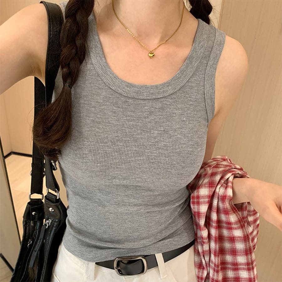 24NEW リブ生地 無地 タンクトップ キャミソール インナー 6color