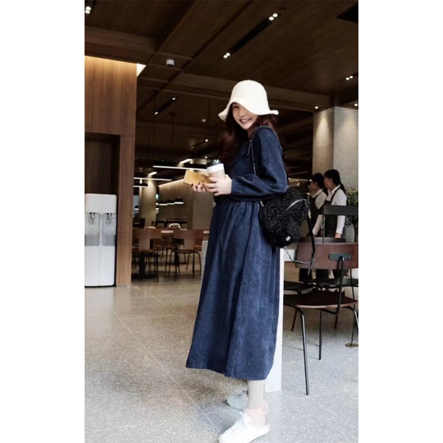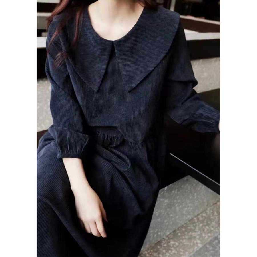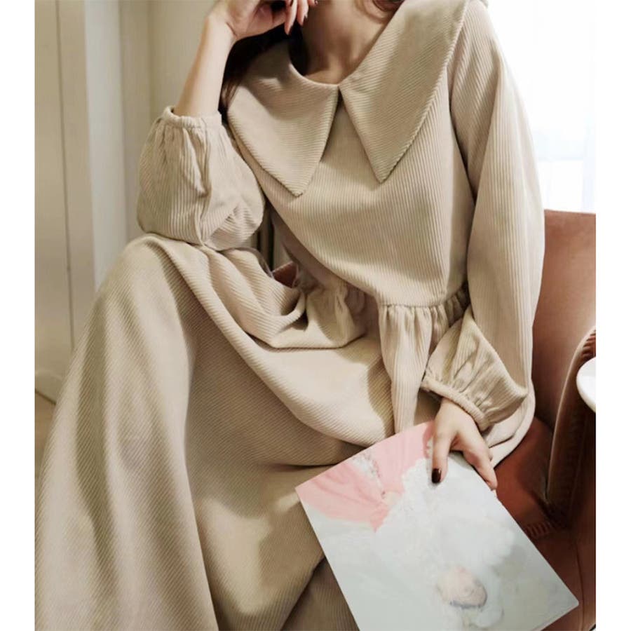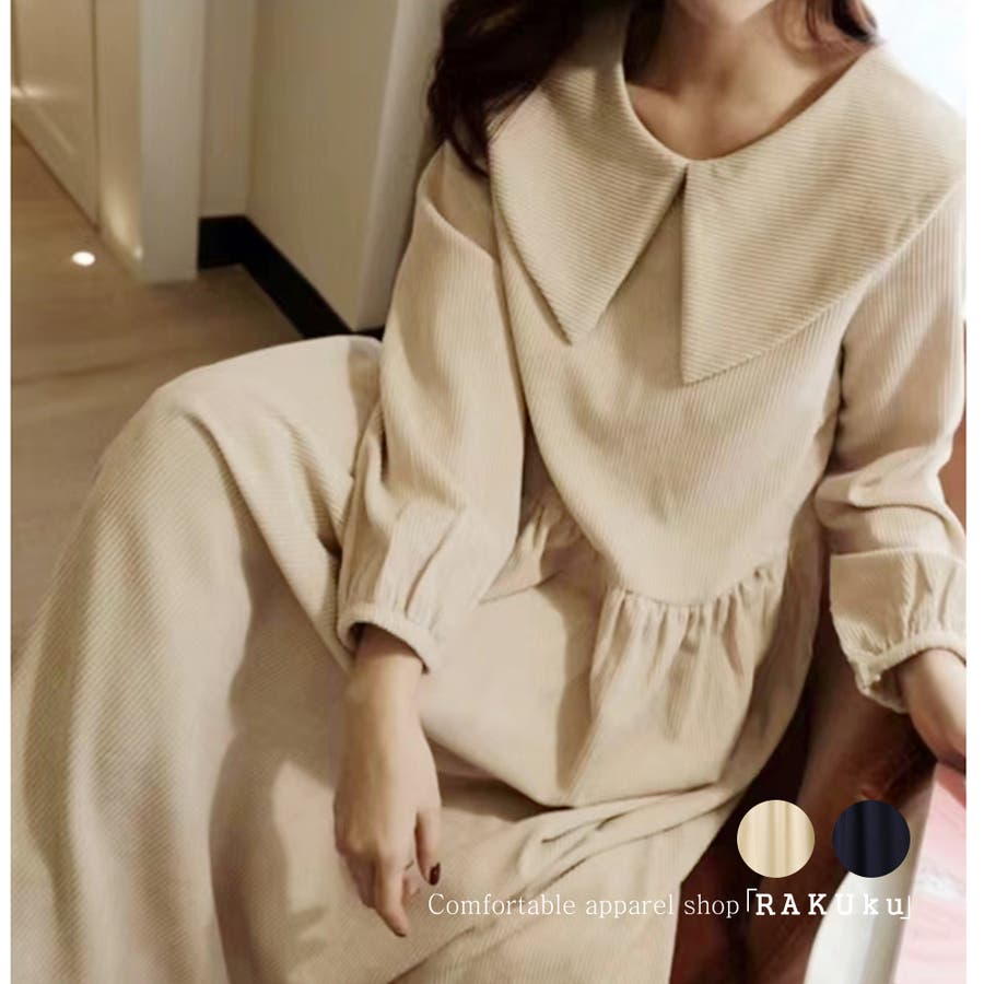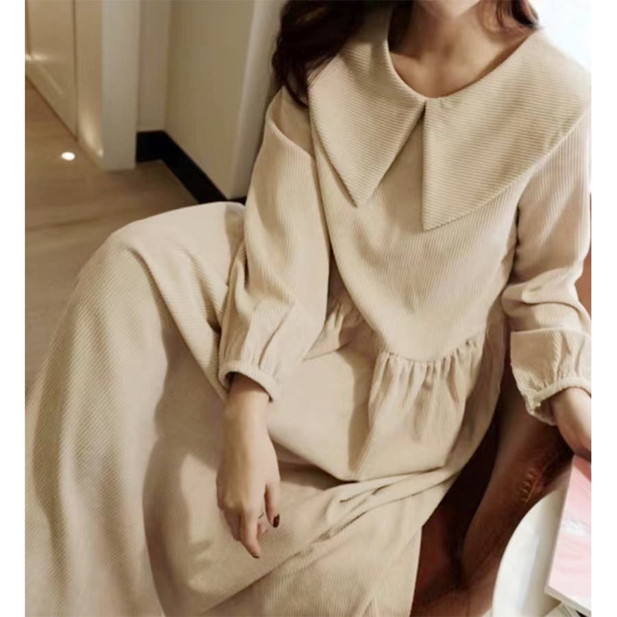 ビッグ襟 ビッグカーラー ロングワンピース