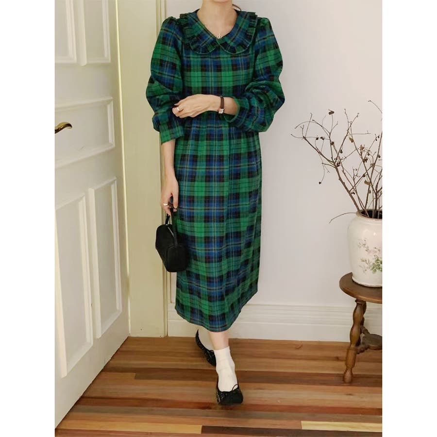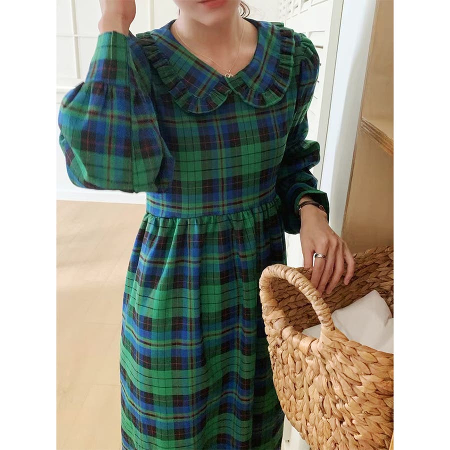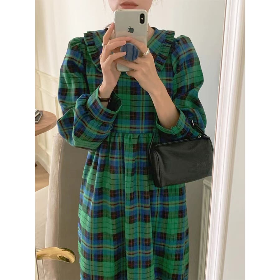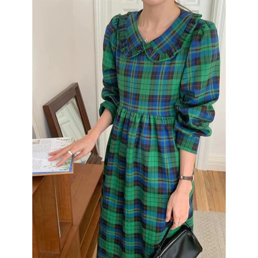 チェック柄 レーディス ワンピース ワンピ ゆったり 体型カバー 韓国ファッション 韓国風
