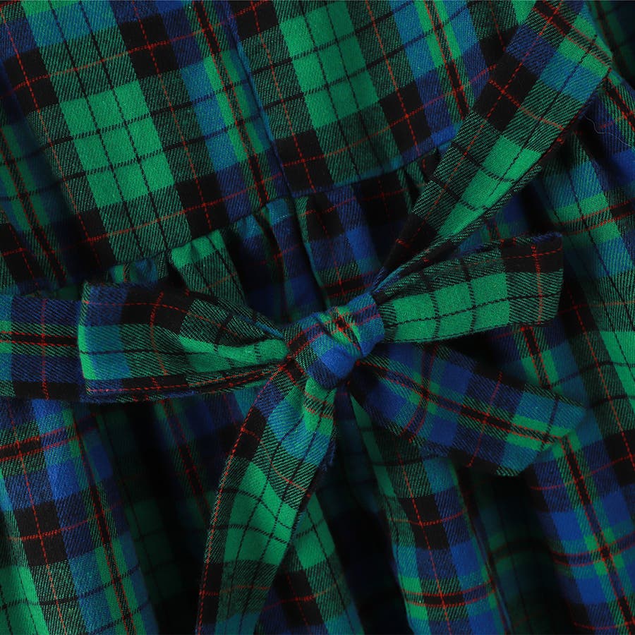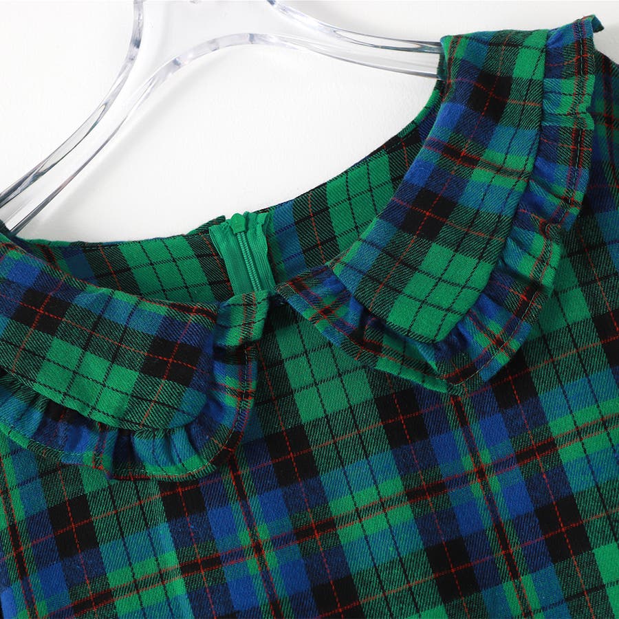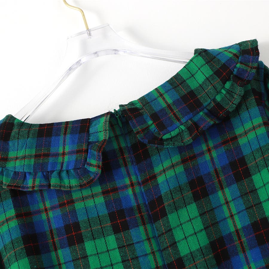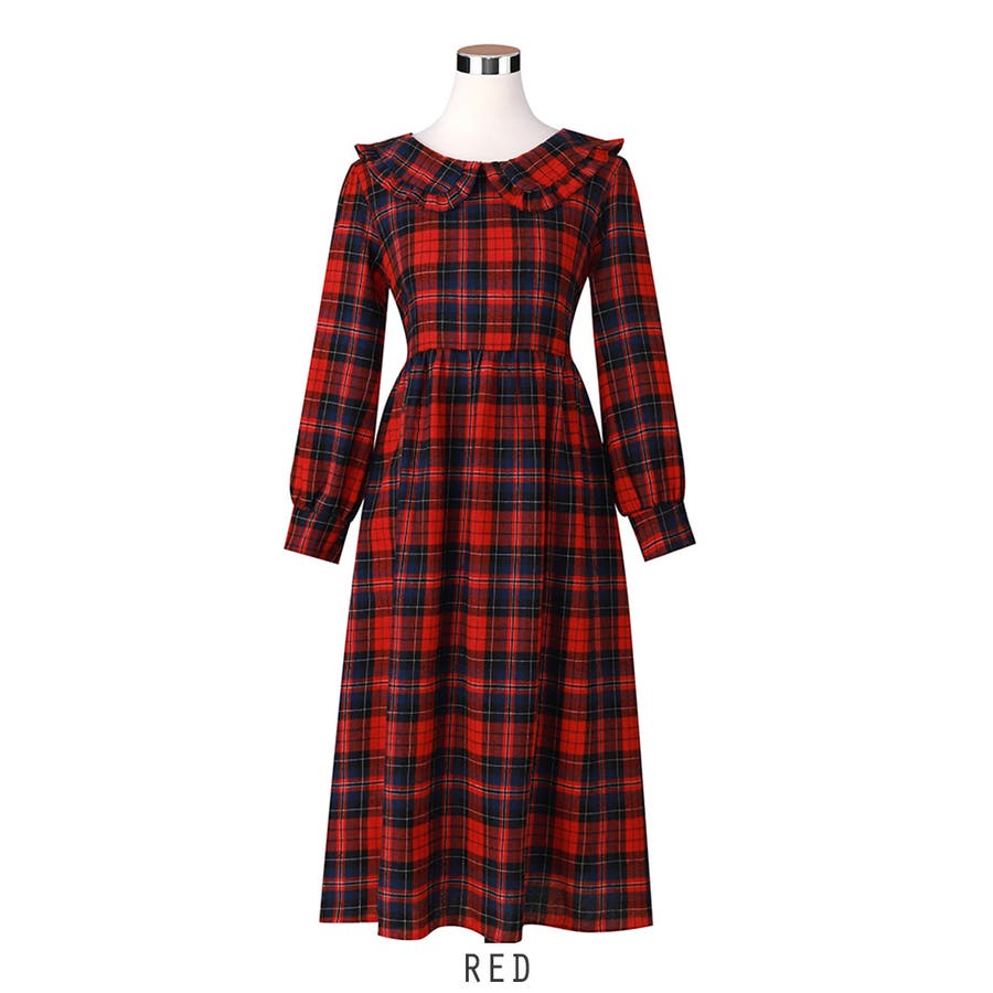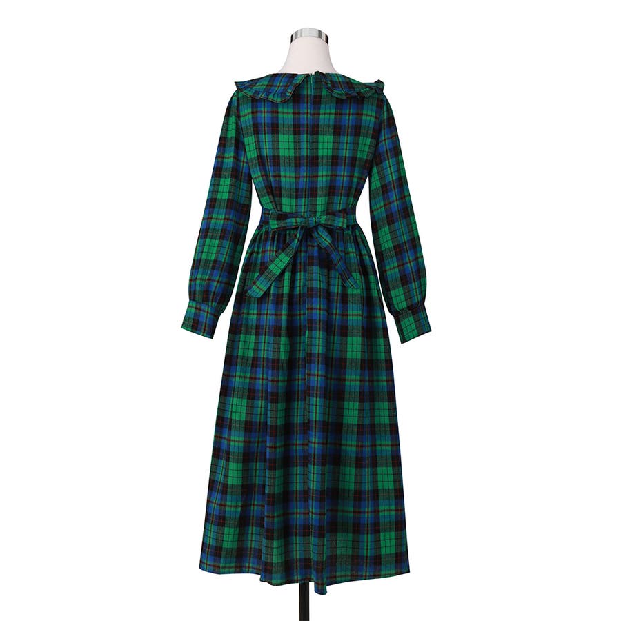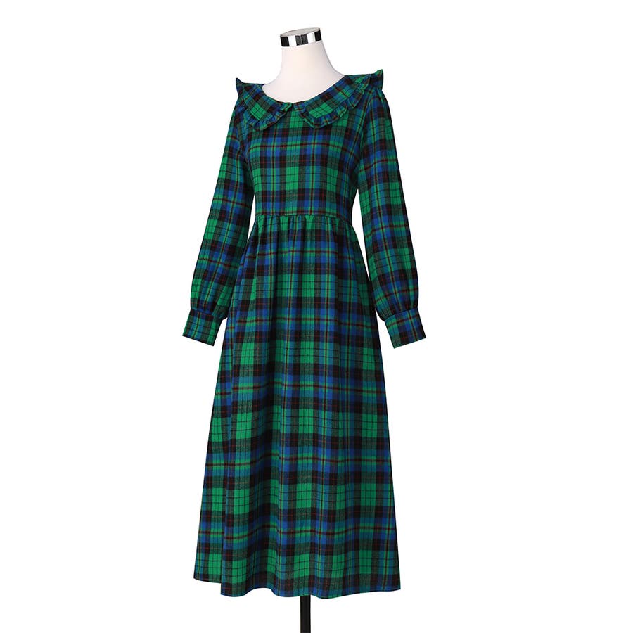 ビッグ襟 チェック柄 レースアップドレス