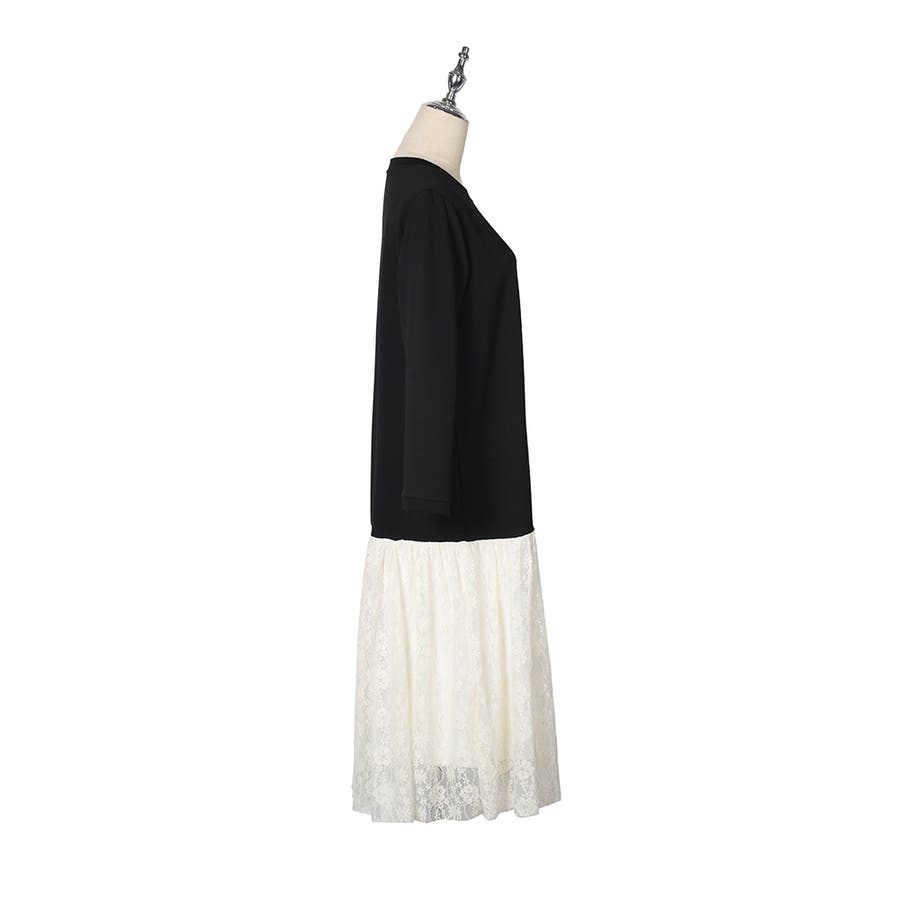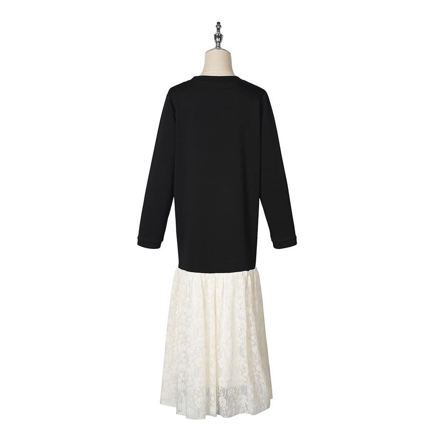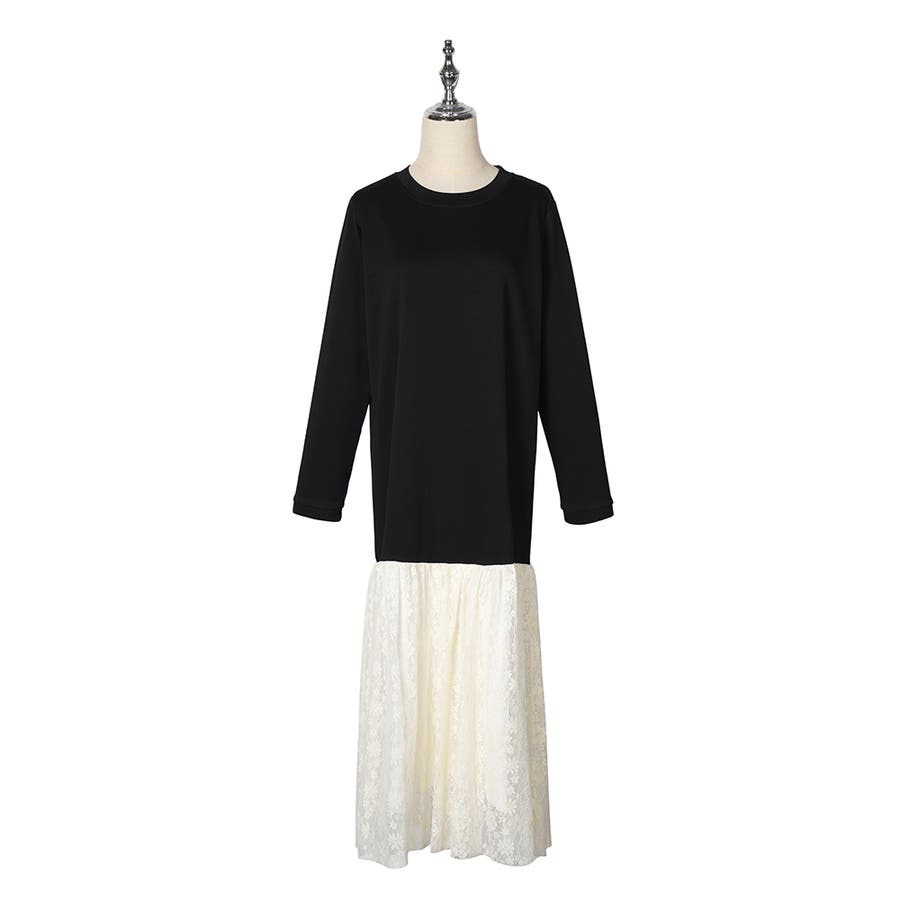 24NEW 異素材 レース ワンピース エレガント ゆったり ワンピース