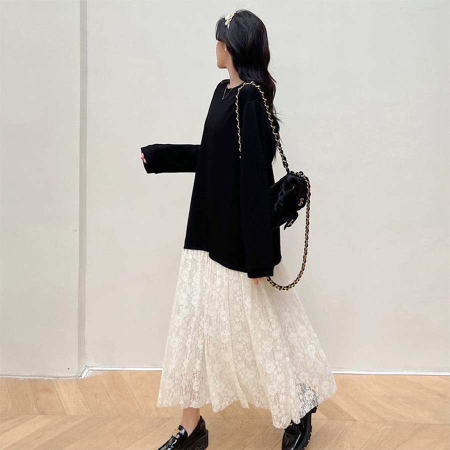 レーディス ワンピース ワンピ ロング丈 マキシ丈 レース ゆったり 体型カバー マタニティウェア 韓国ファッション rakuku