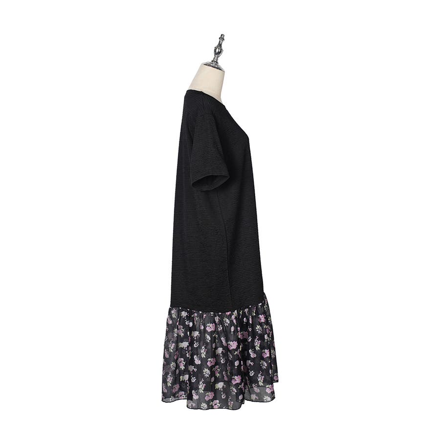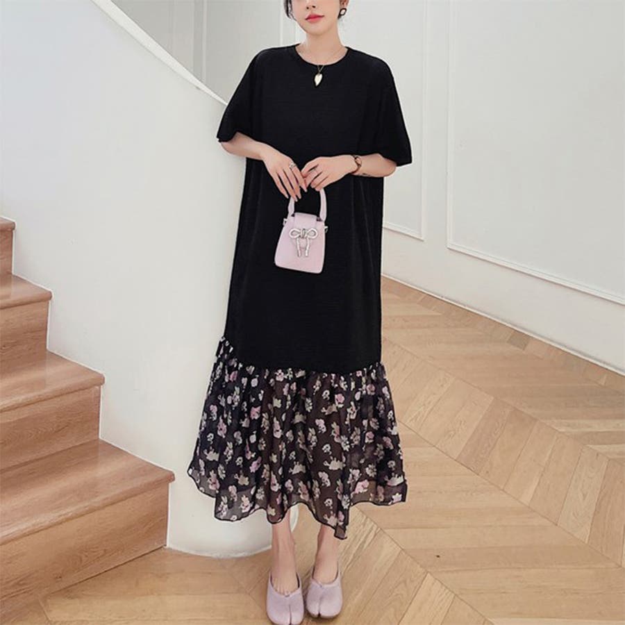 春夏 半袖 ワンピース ロング丈 シンプル 無地 花柄 韓国ファッション