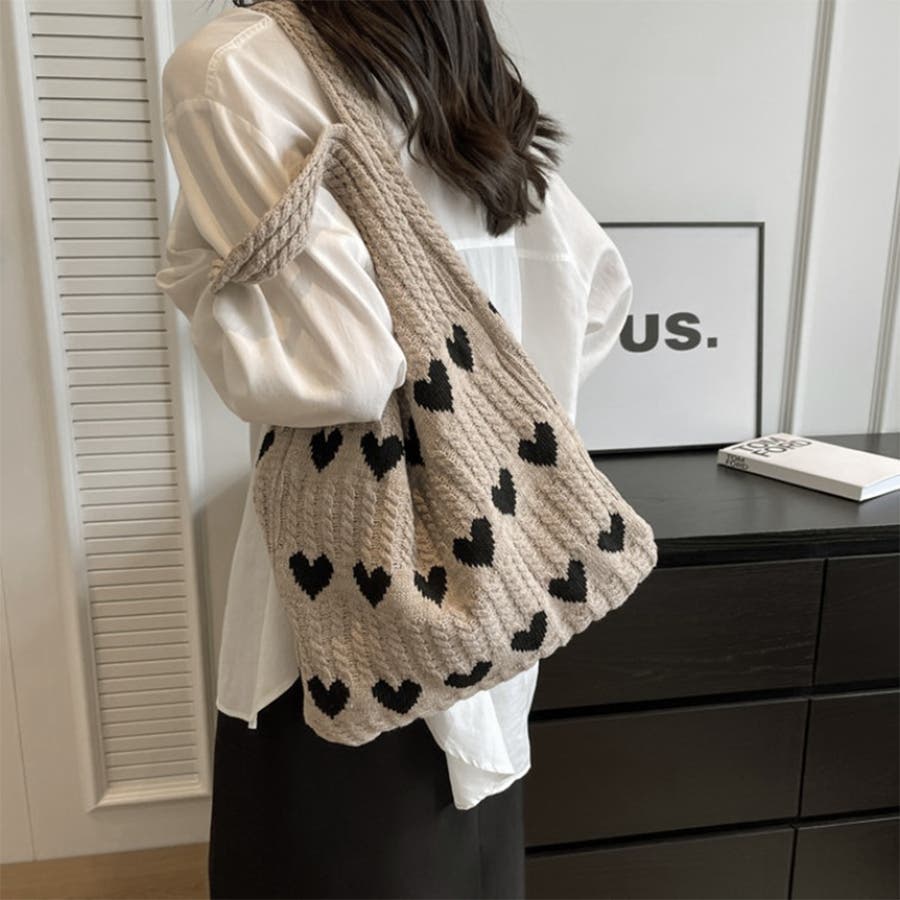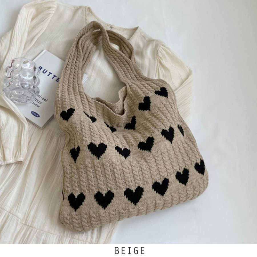 24NEW ハート柄 ニットバッグ