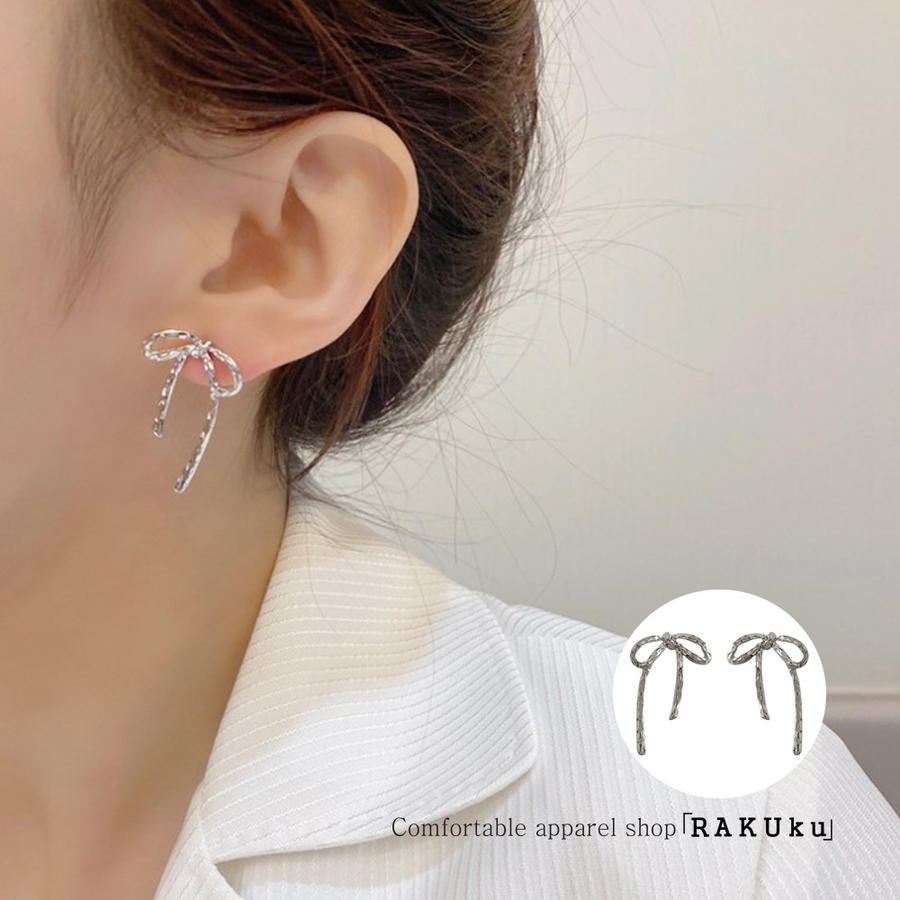 アクセサリー ピアス イヤリング リボンデザイン 両耳用 カジュアル オフィス 通勤 通学 シンプル パーティー オケージョン 韓国風 韓国ファッション rakuku