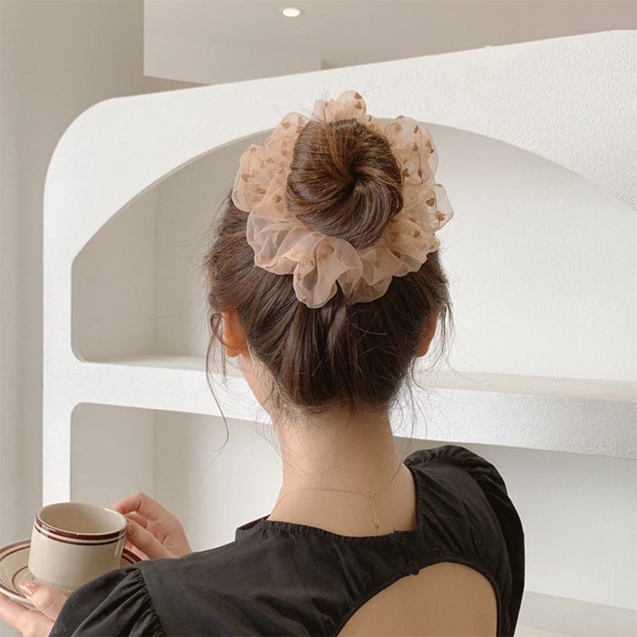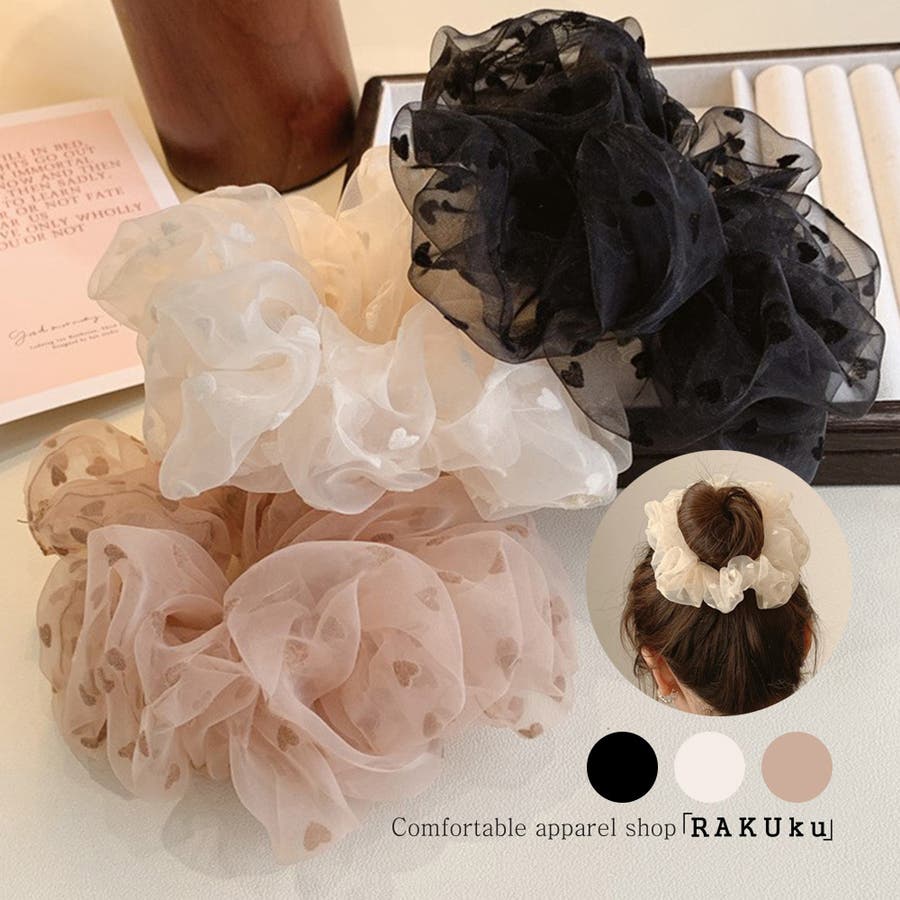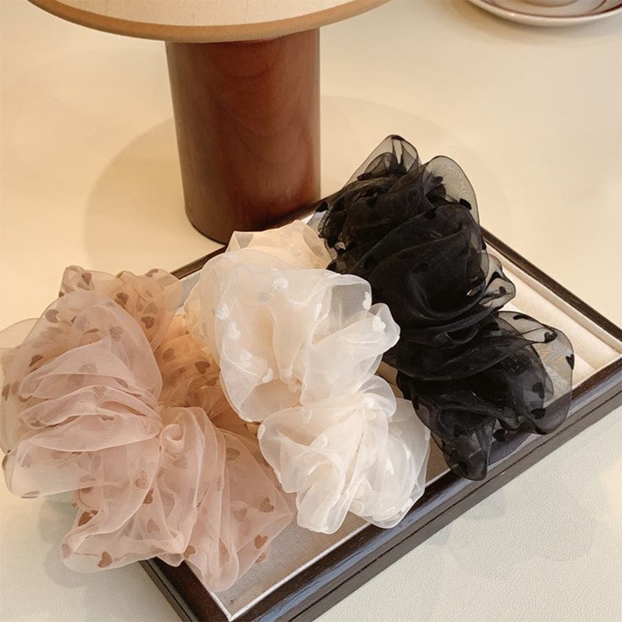 ヘアアレンジ ヘアアクセサリー シュシュ ハート柄 ヘアゴム カジュアル オフィス 通勤 通学 シンプル パーティー 韓国風 韓国ファッション
