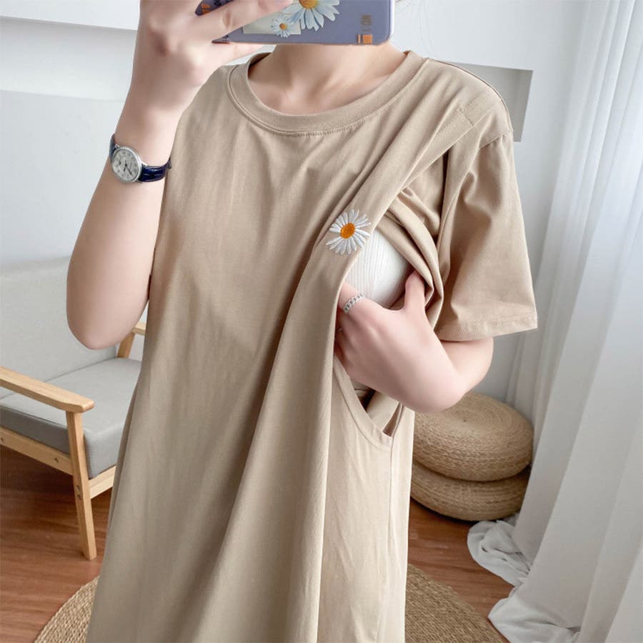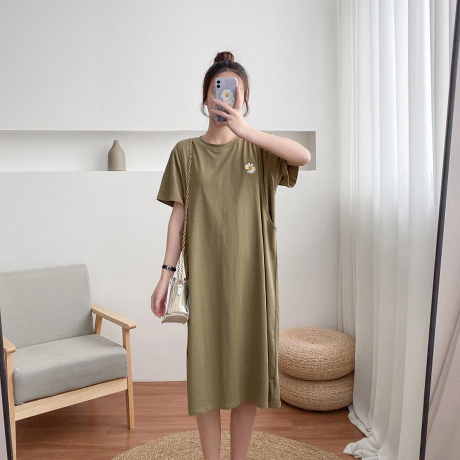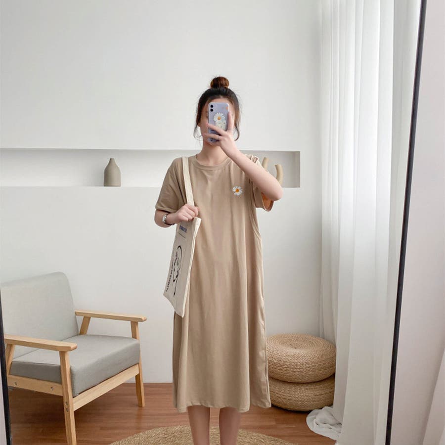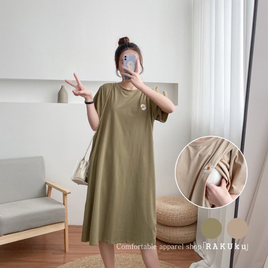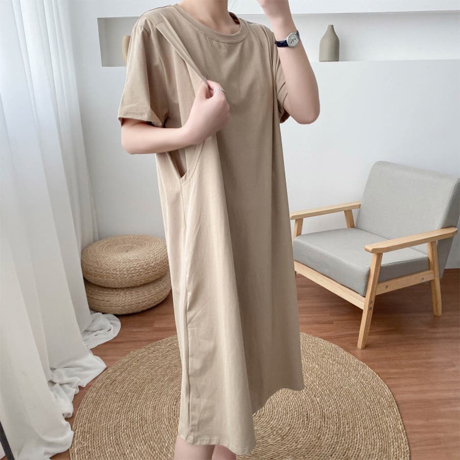 マタニティウェア 出産後 ワンピース Tシャツワンピース ワンピー 無地 シンプル 半袖 韓国ファッション