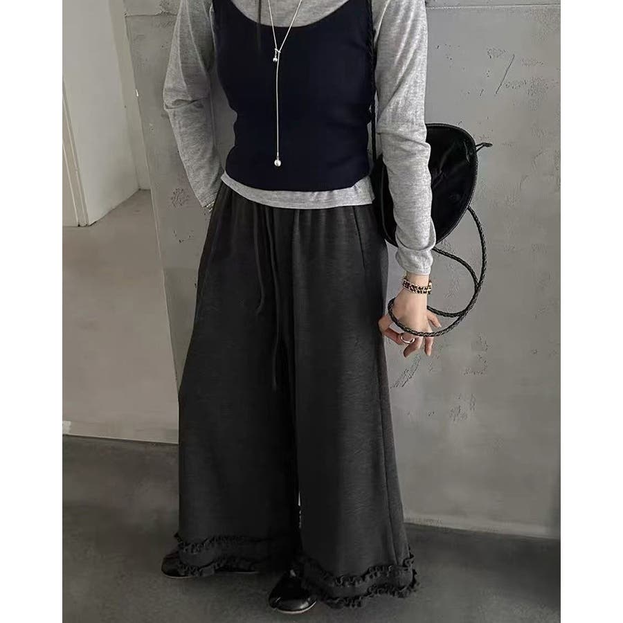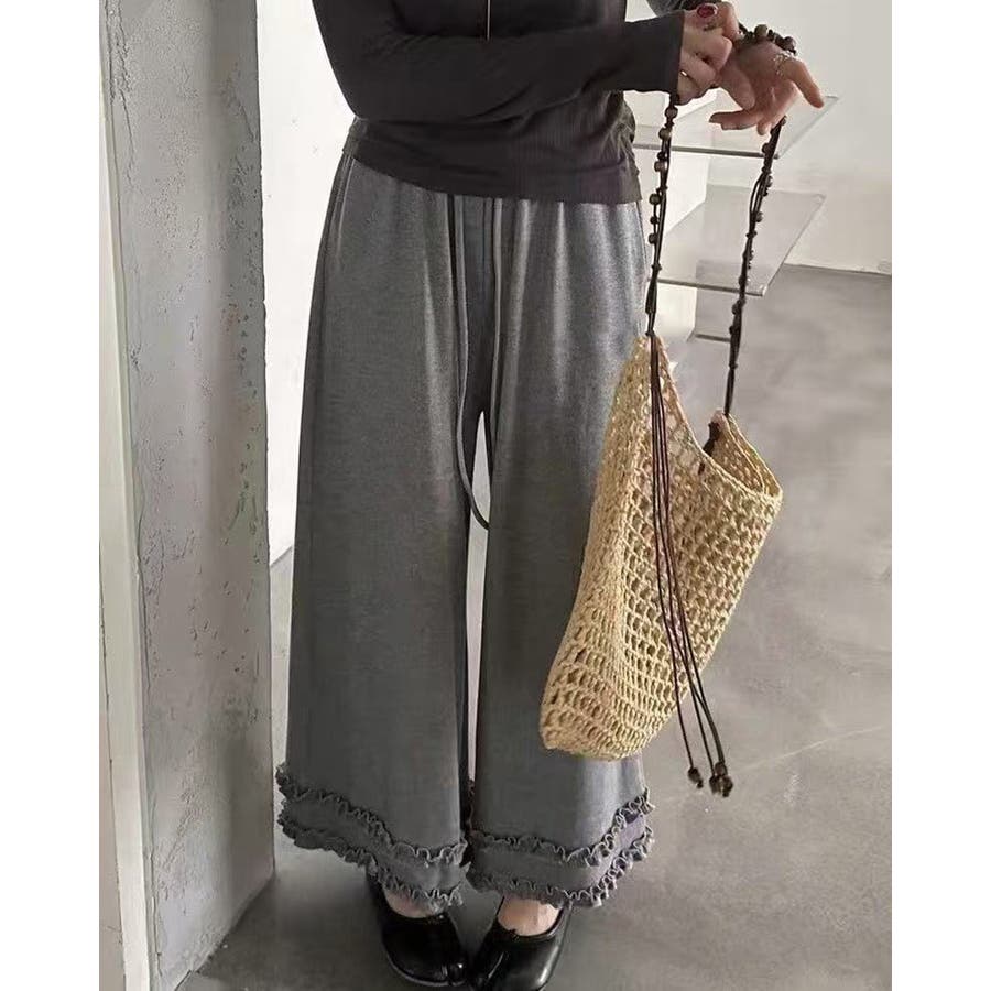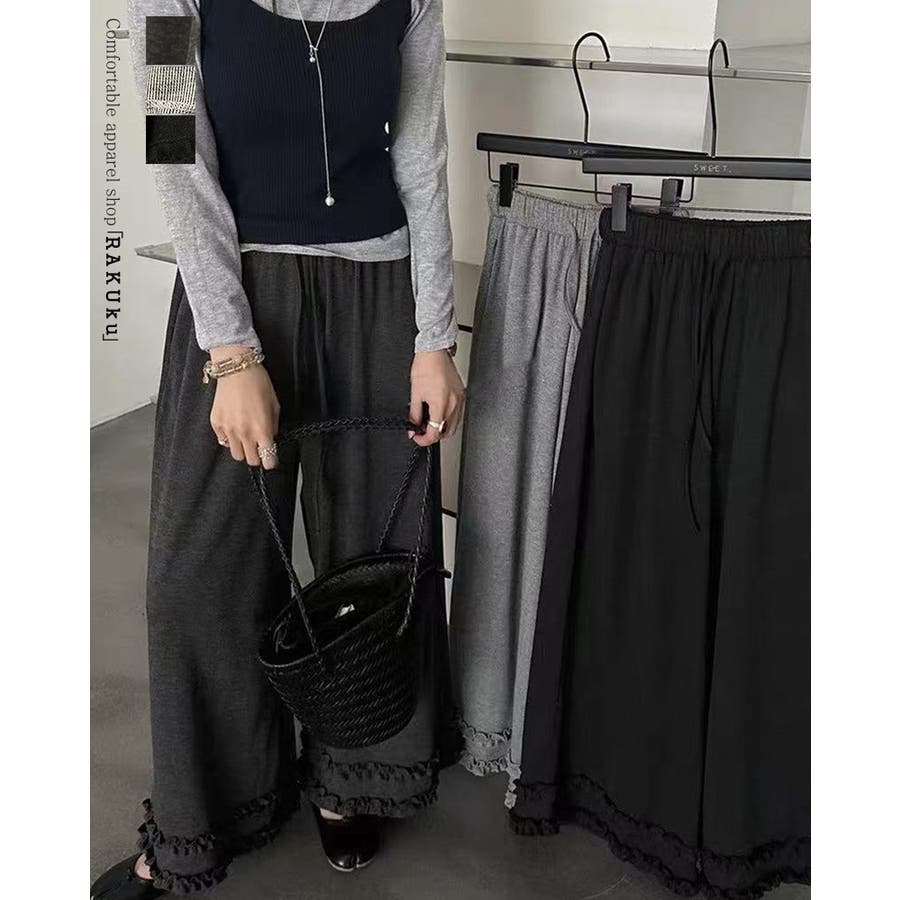 ボトムス パンツ レディース ワイドパンツ スウェットパンツ 春 秋 冬 ハイウエスト フリル ガーリー フェミニン ナチュラル ミセス カジュアル 大人可愛い かわいい ウエストゴム 楽ちん 体型カバー 運動会 ピクニック 遊園地 イベント 参観 デート 女子会 ランチ会 ママ会 流行 デイリー イベント シンプル おしゃれ おでかけ 通勤 通学 カジュアル 韓国系 rakuku