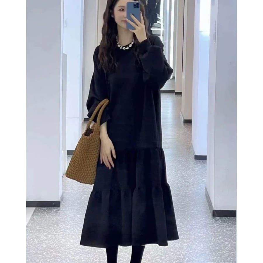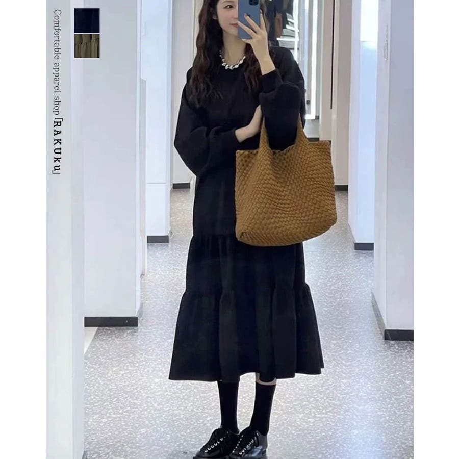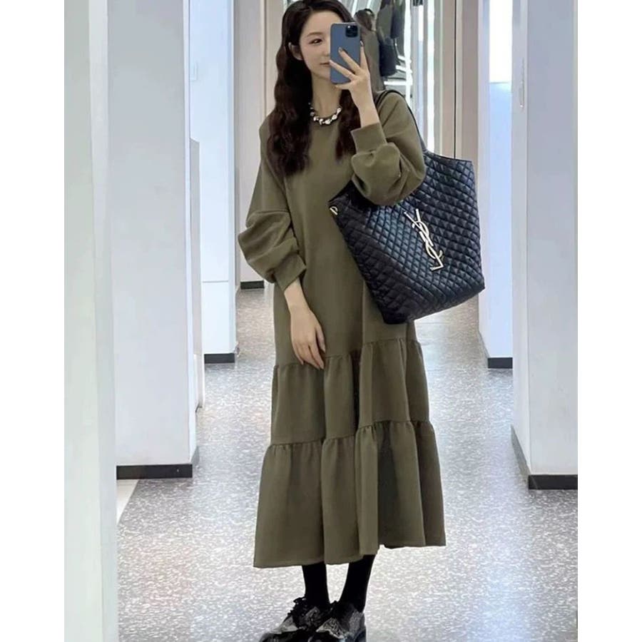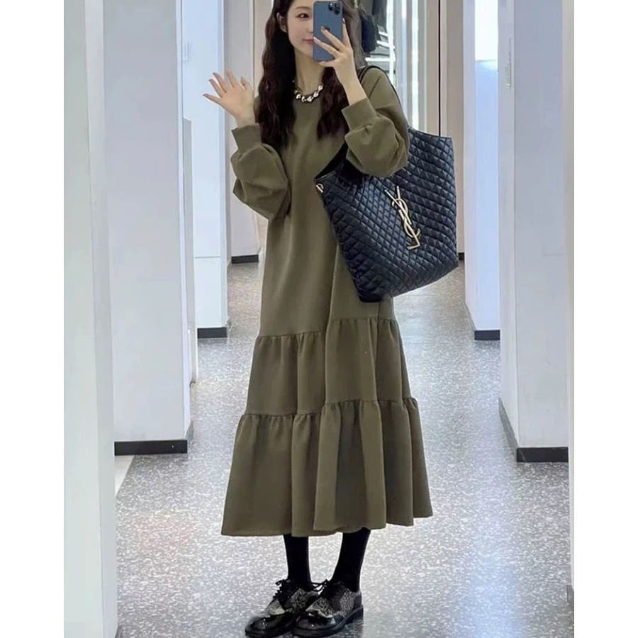 【マタニティにも◎】リラックス感たっぷり ゆったりロングワンピース。体型を気にせず着られる、ゆったりシルエットのロングワンピース。柔らかく落ち感のある素材で、動くたびにふんわり揺れる女性らしいデザインです。締め付けがなくマタニティ期にも快適に着られるので、妊娠中?産後にもぴったり◎レギンスやタイツとも相性抜群です。カラーは落ち着いたブラックとカーキの2色展開。一枚でサマになる、デイリー使いにおすすめのアイテムです。レーディス ワンピース ワンピ 春 秋 冬 ロングワンピ ロングワンピース ティアード フレアワンピース マタニティ 妊婦 体型カバー 旅行 バケーション オケージョン デート ママ会 オケージョン 参観 卒園式 入園式 卒業式 入学式 きれいめ 発表会 クリスマス会 年末年始 イベント フォーマル デイリー 大人可愛い フェミニン ガーリー 可愛い系 モノトーン シンプル ワントーン お出かけ 大人女子 韓国 韓国ファッション おしゃれ ラクク rakuku