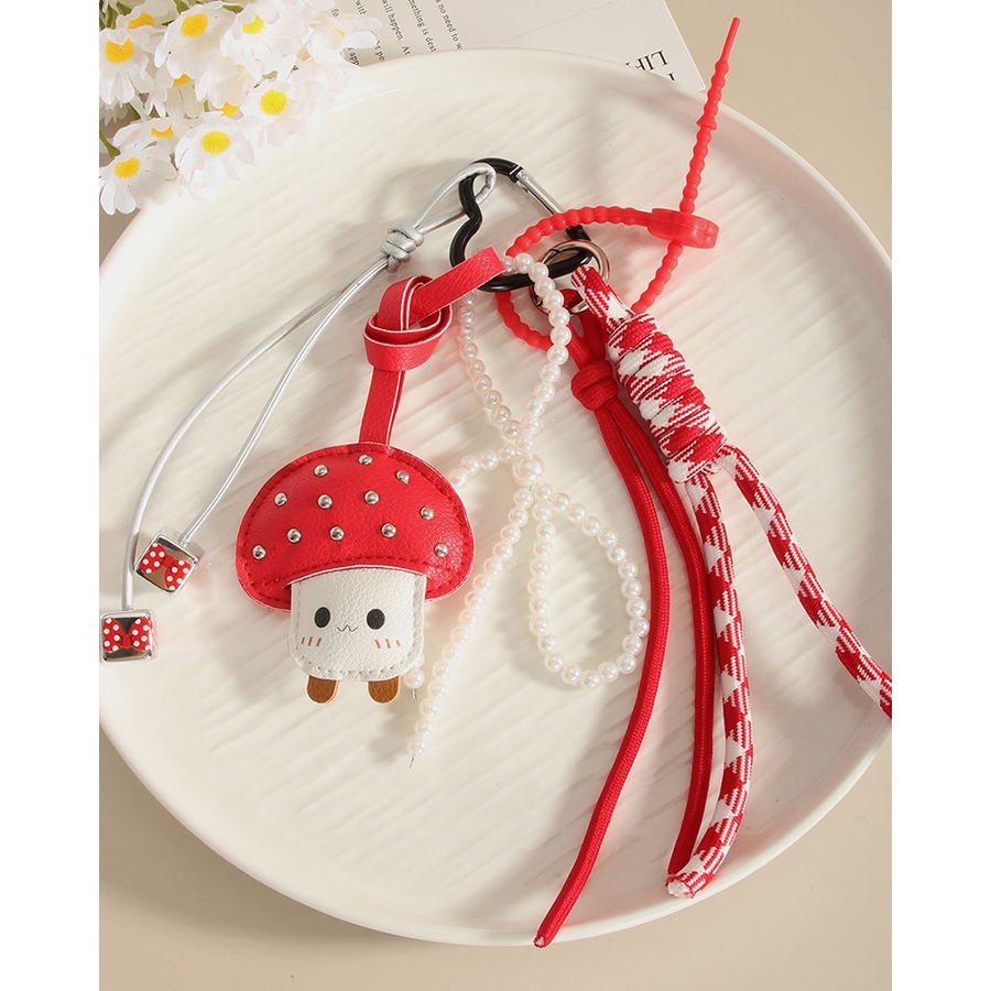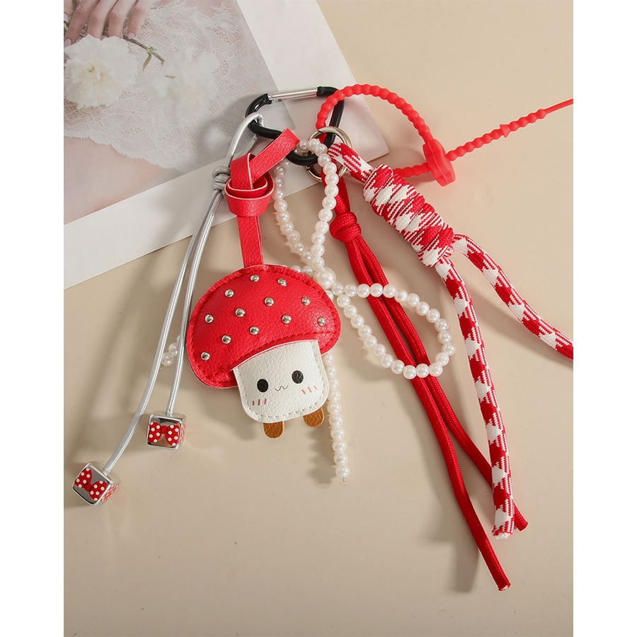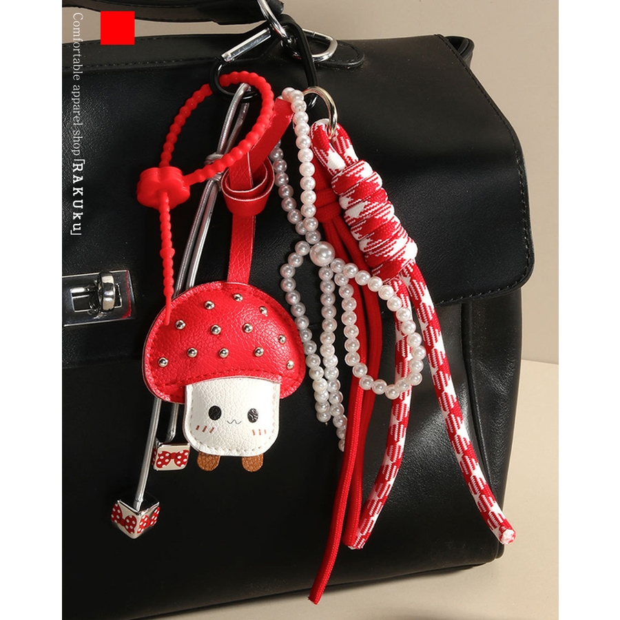 バッグチャーム キーホルダー キーリング キノコ きのこちゃん きのこ好き ハート heart パールリボン ドット 赤白 りぼん 映え ラブリー フェミニン キュート ガーリー かわいい 癒し系 流行 人気 韓国ファッション おしゃれ 大人可愛い 大人女子 Rakuku