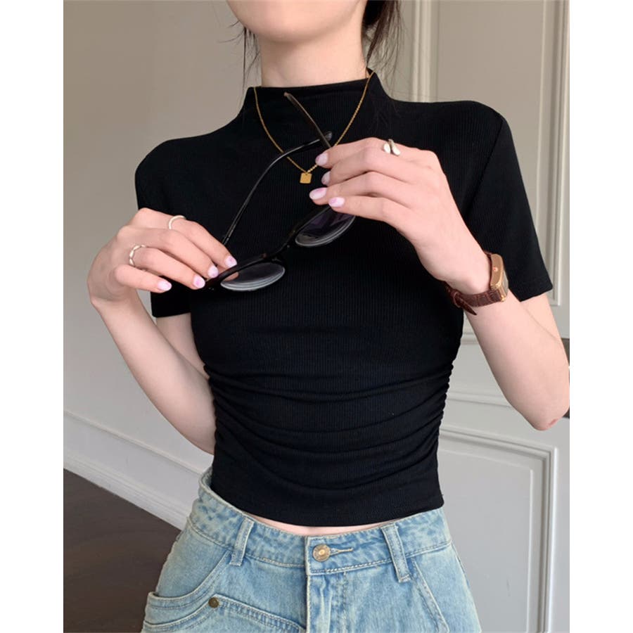 レーディス トップス Tシャツ カジュアルコーデ デイリーコーデ シンプル お出かけ 韓国ファッション 韓国 韓国風 rakuku 袖 tシャツ ストレッチ素材 半袖Tシャツ 無地 カジュアル トップス