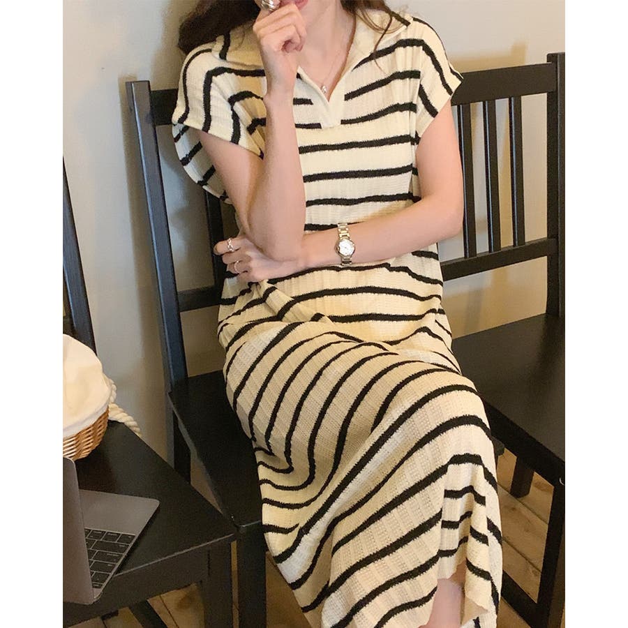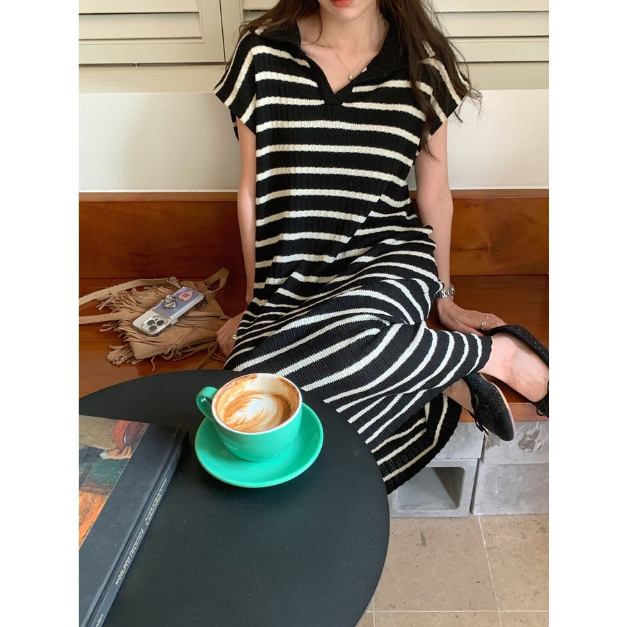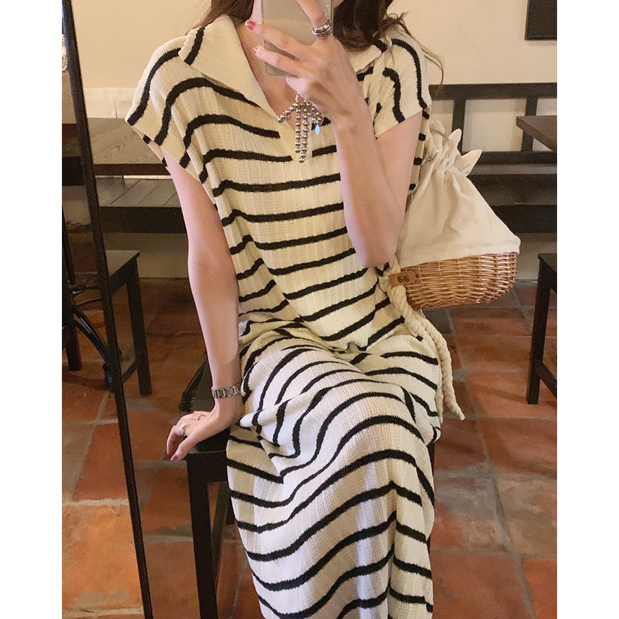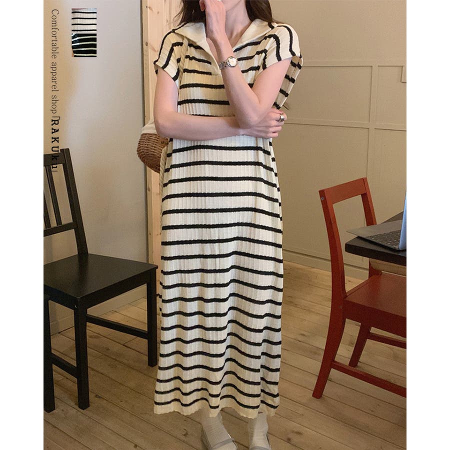 ボーダーサマーニット ワンピース ロングワンピース