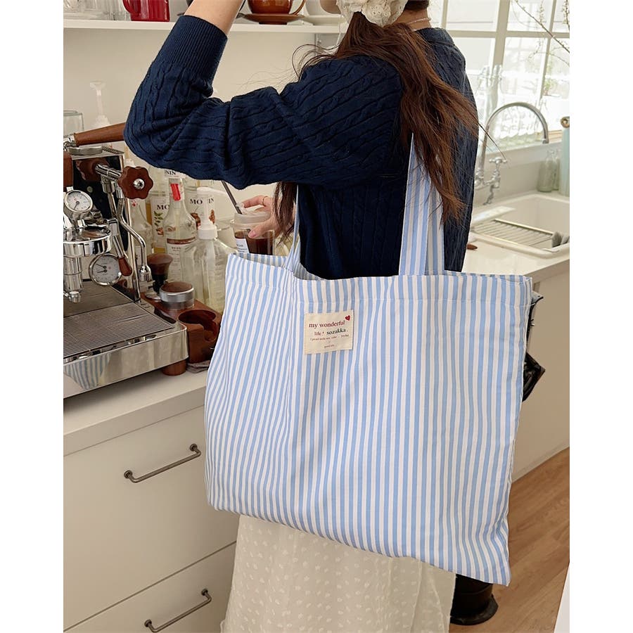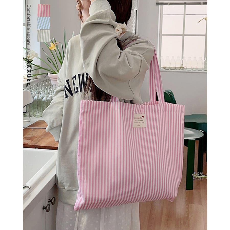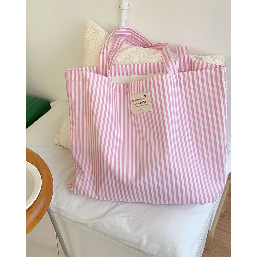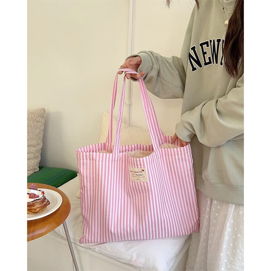 25ss ストライプトートバッグ サブバッグ かわいい 韓国系 パステル