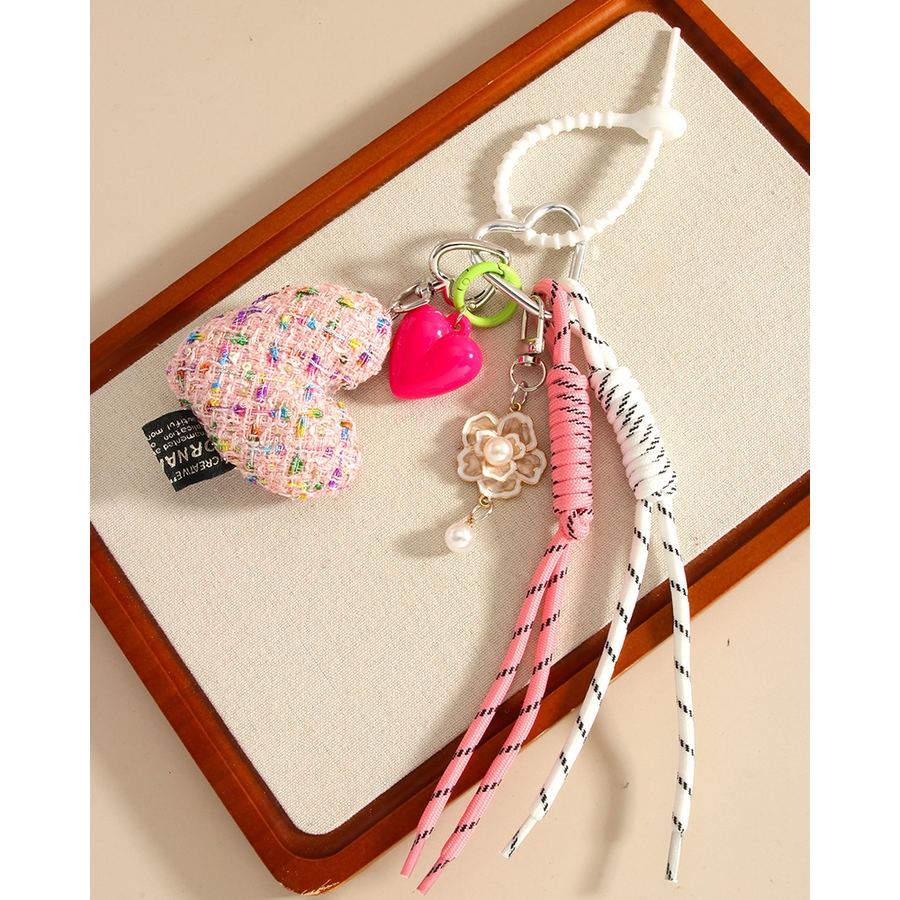 バッグチャーム キーホルダー キーリング ハート heart ピンク レッド ホワイト ツイード お花 パール 映え ラブリー フェミニン キュート かわいい 流行 人気 韓国ファッション おしゃれ 大人可愛い Rakuku