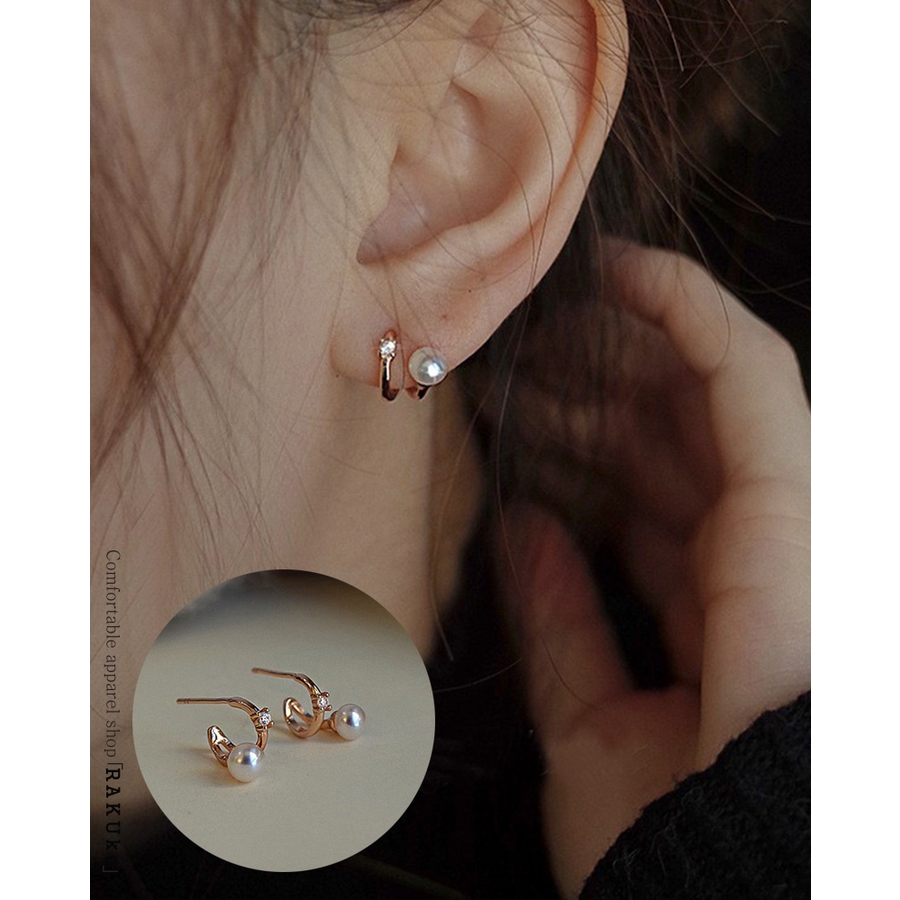 アクセサリー ピアス 二連ピアス 二連イヤリング イヤリング くるくる ストーン 両耳用 大人可愛い 高見え おしゃれ オフィス 通勤 通学 記念日 結婚式 参観日 入学式 卒業式 春 夏 秋 冬 フェミニン ゴージャス パーティー オケージョン デート pinkgold ピンクゴールド 韓国系
