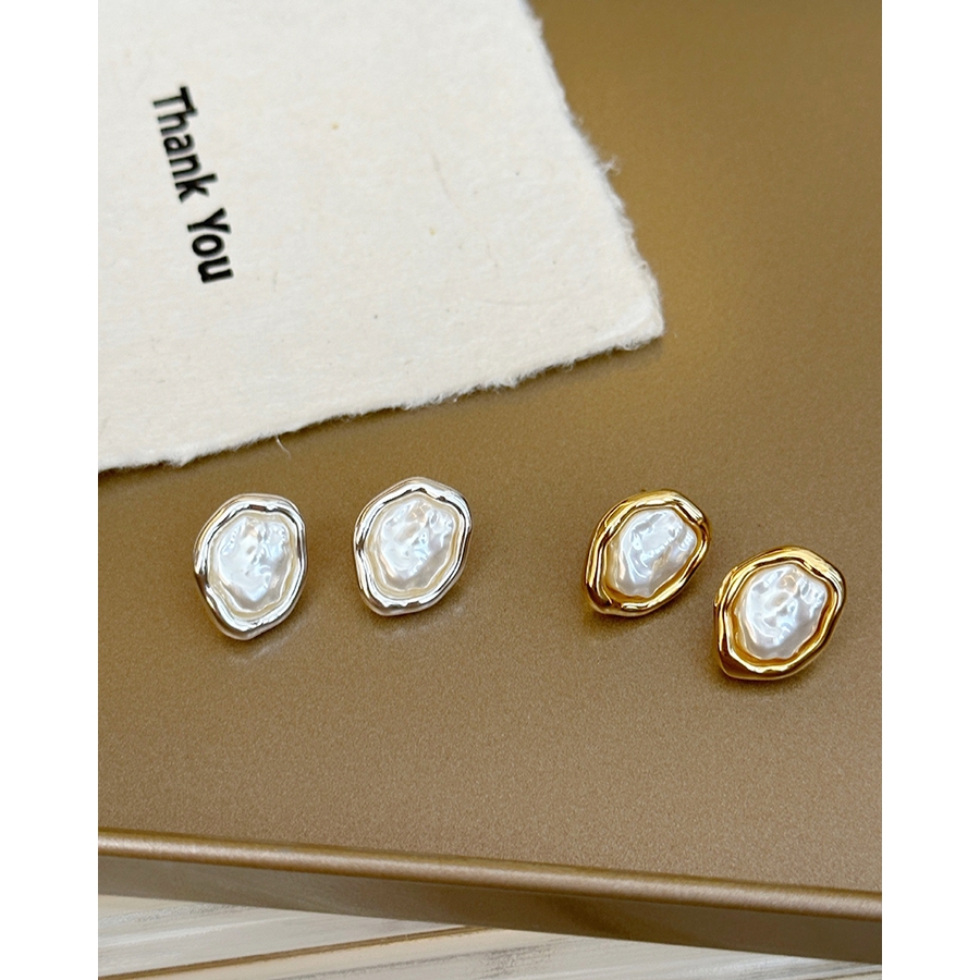 フレームフェイクパールピアス ゴールドフレーム シルバーフレーム