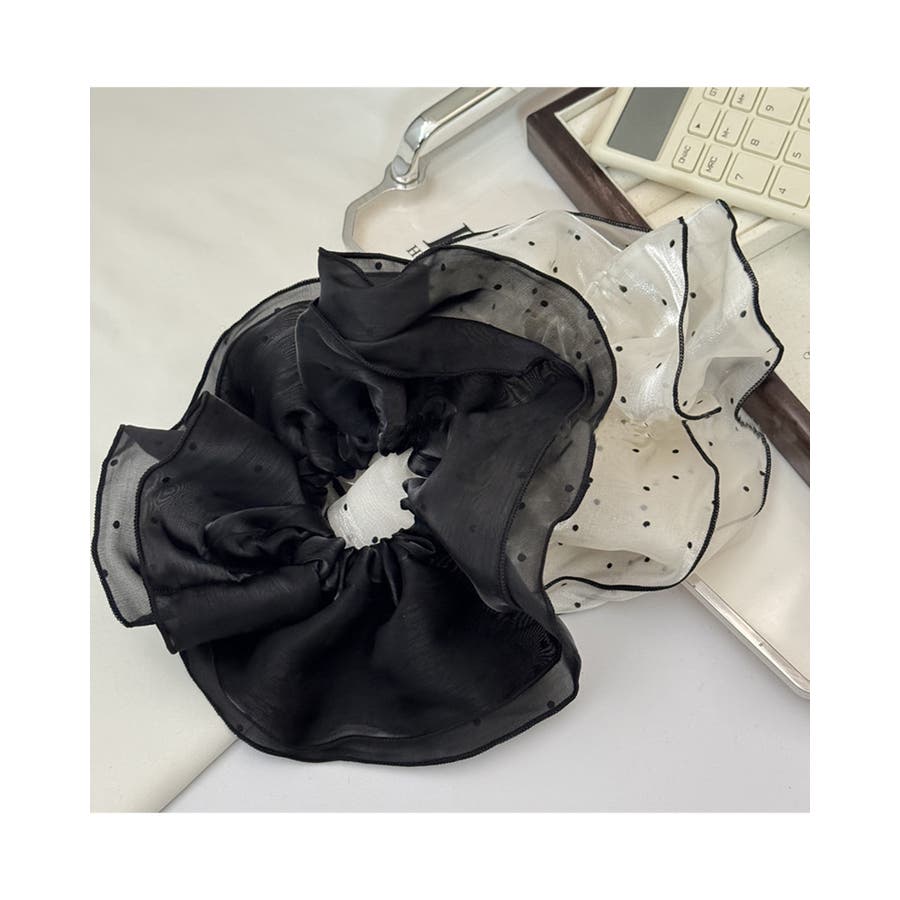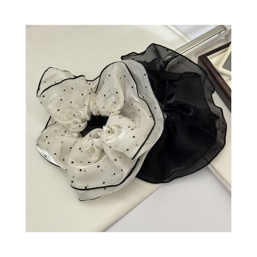 フリルドットシュシュ ビッグフリル モノトーン 水玉