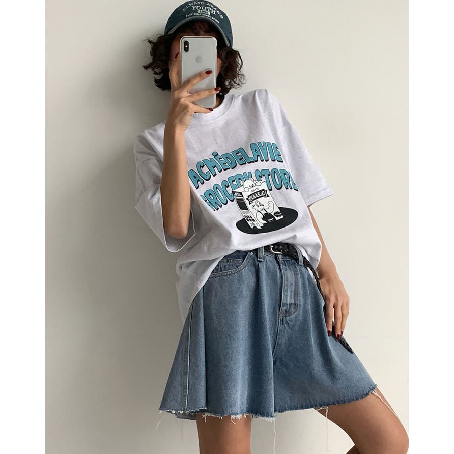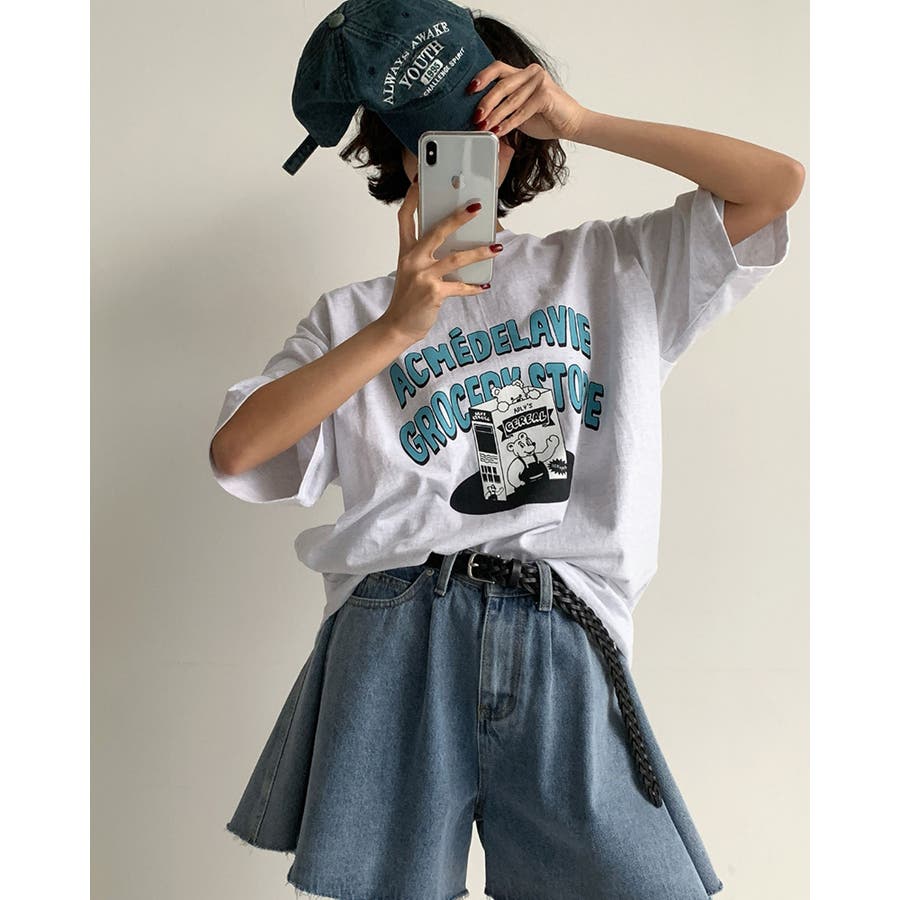 オーバーサイズ プリントTシャツ 韓国ファッション