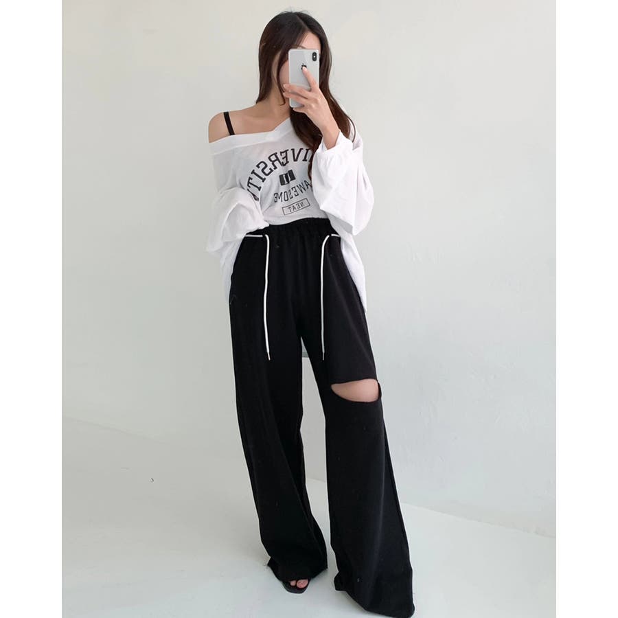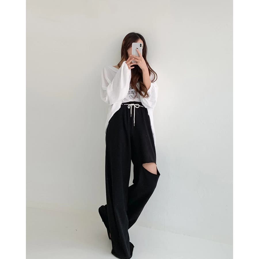 カットアウトワイドスウェットパンツ カットオフパンツ madeinkorea
