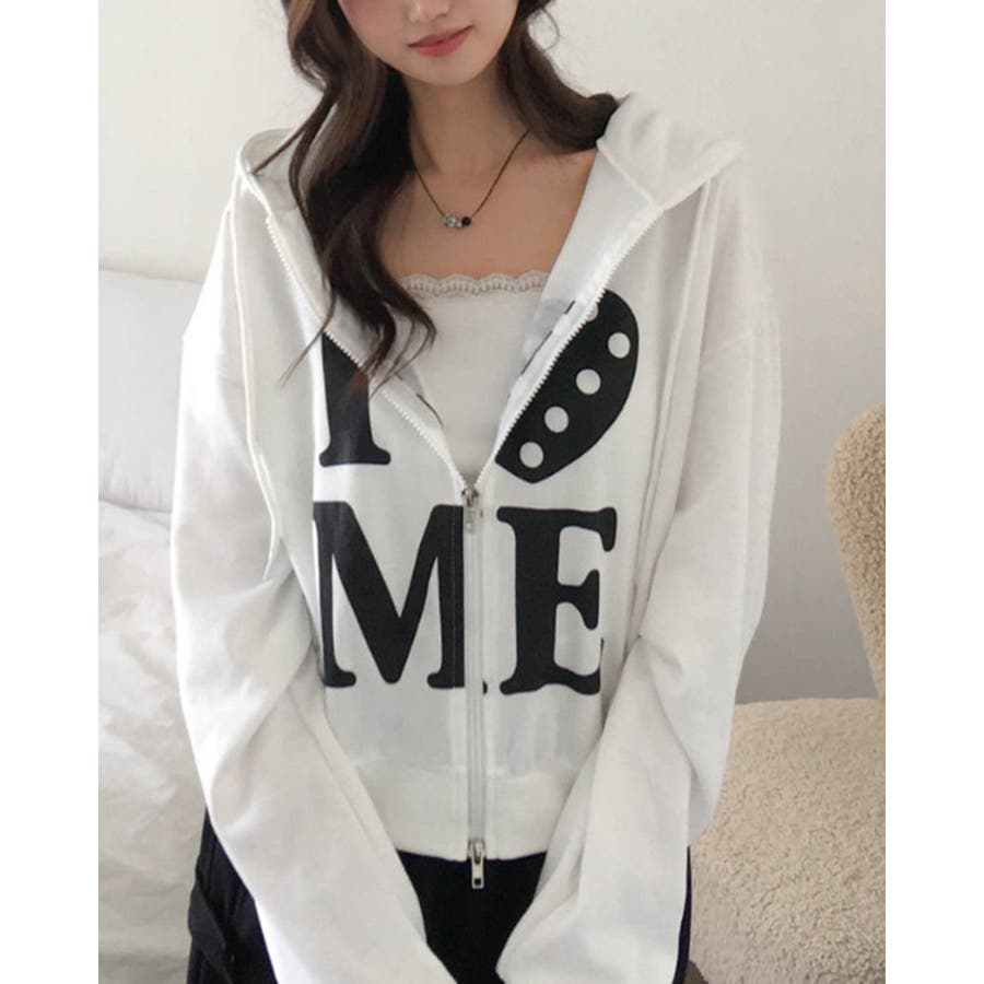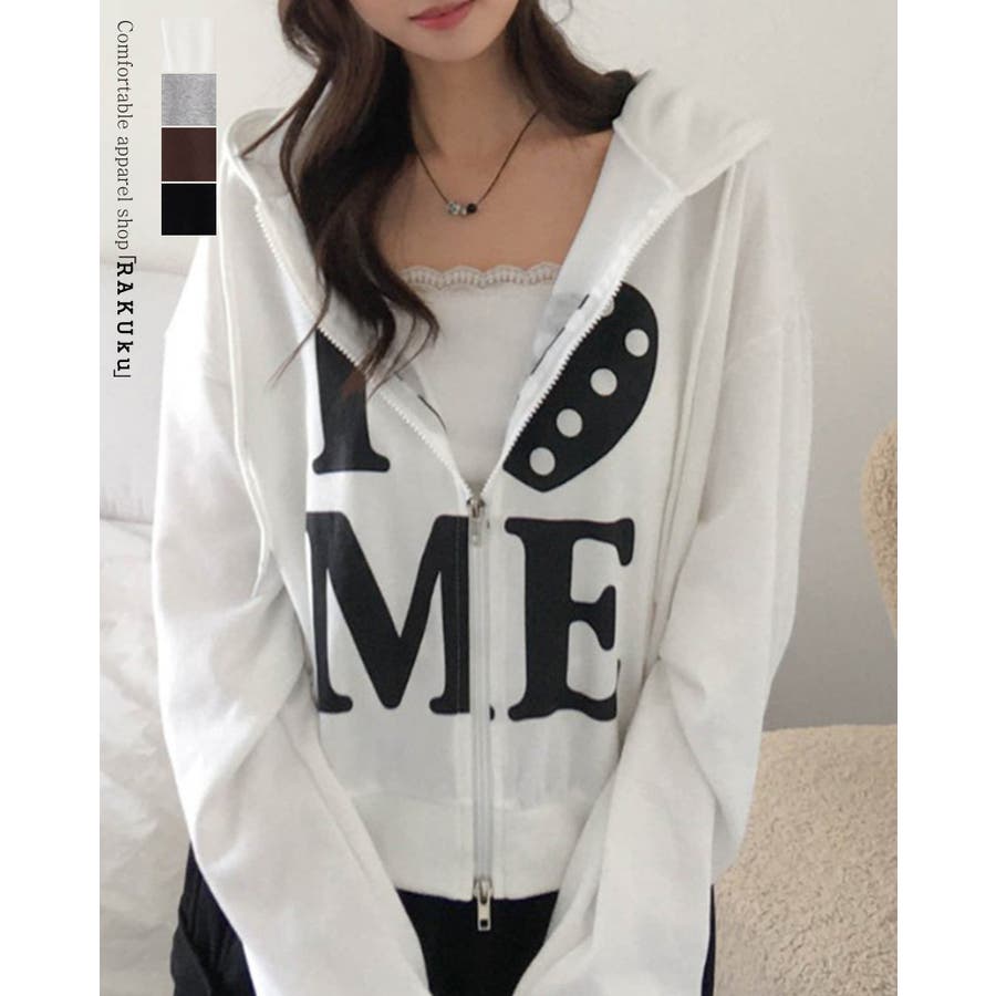 シンプルなデザインに絶妙なカラーレタリングがポイントのジップアップフーディー。キュートなデザインながら、やや薄手の落ち感のあるスウェット生地なので前を開けてリラクシーにもご着用いただけるアイテムです。レーディス パーカー 秋冬 フーディ フーディー フード付き スウェット ジップパーカー アウター 羽織り ライトアウター 上着 温度調節 秋 秋物 車移動 ファスナー アイラブ 無地 ハート ドット ドットハート ショート丈 前開き デイリー トップス ガーリー 長袖 カジュアル フェミニン 大人女子 女子会 ママ会 公園 イベント ピクニック 旅行 機内 学生 可愛い かわいい お洒落 通勤 通学 Y2K 平成 ギャル 韓国ファッション 韓国 韓国系 rakuku ラクク