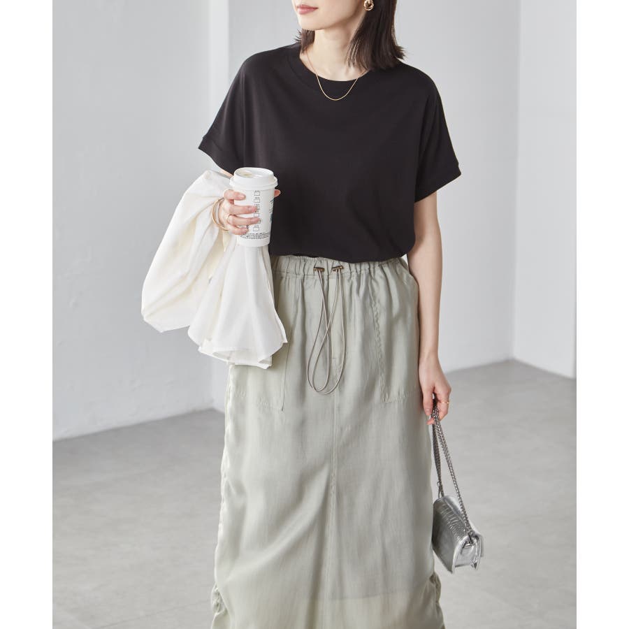 袖は5分袖より抜け感のあるフレンチスリーブにして、気になる二の腕がすっきり見える丈感にしました。