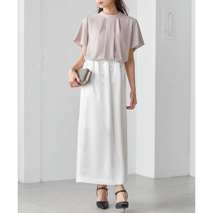 ・首元タックとゆるシルエットで体型カバーも。