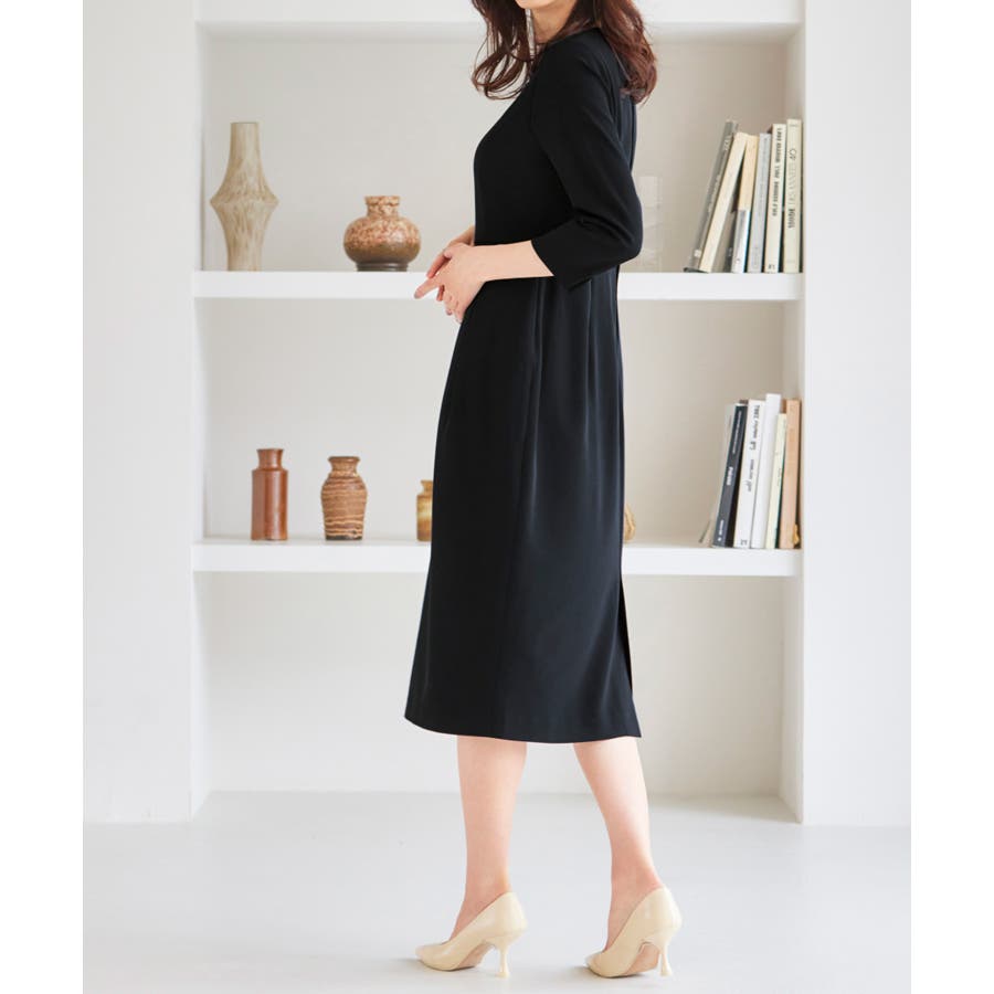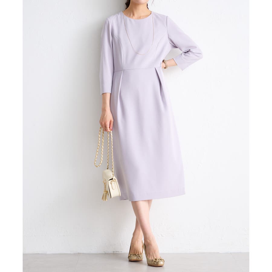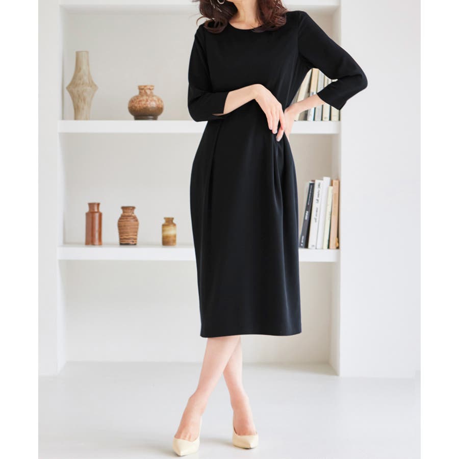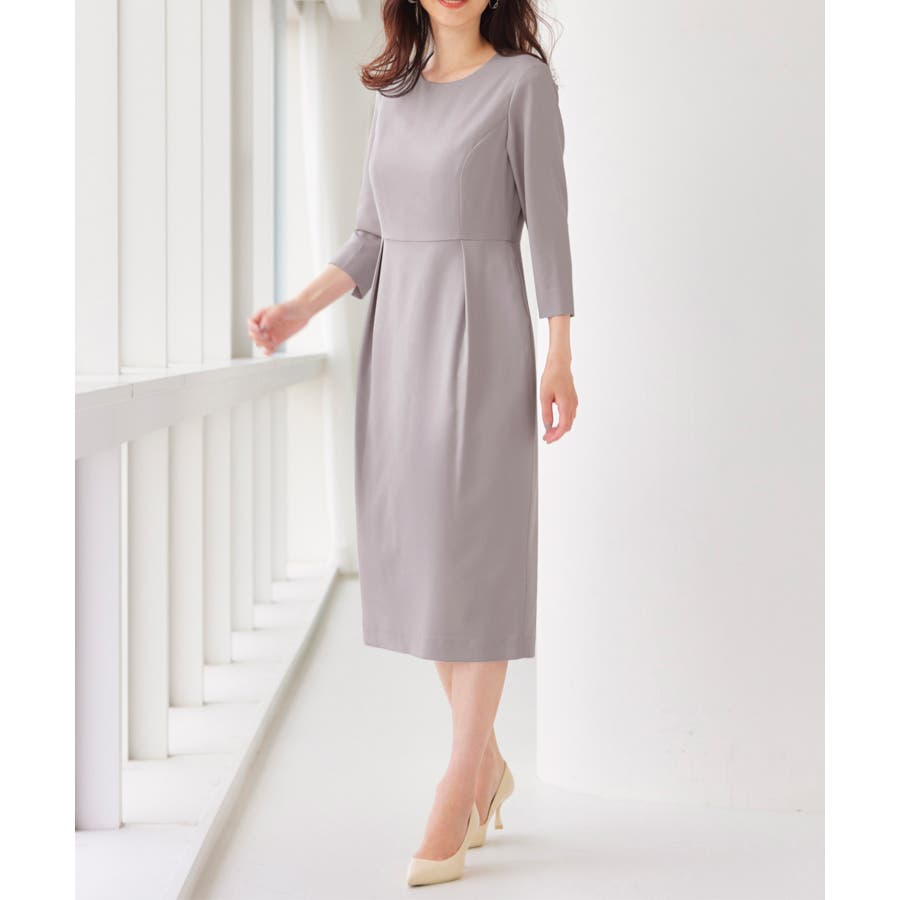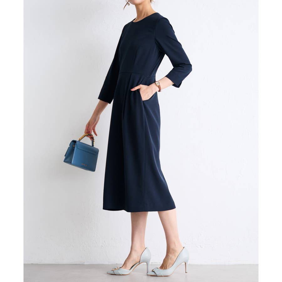 ・美ラインにこだわったワンピースは手首見せの七分袖で抜け感をプラス(ワンピース)