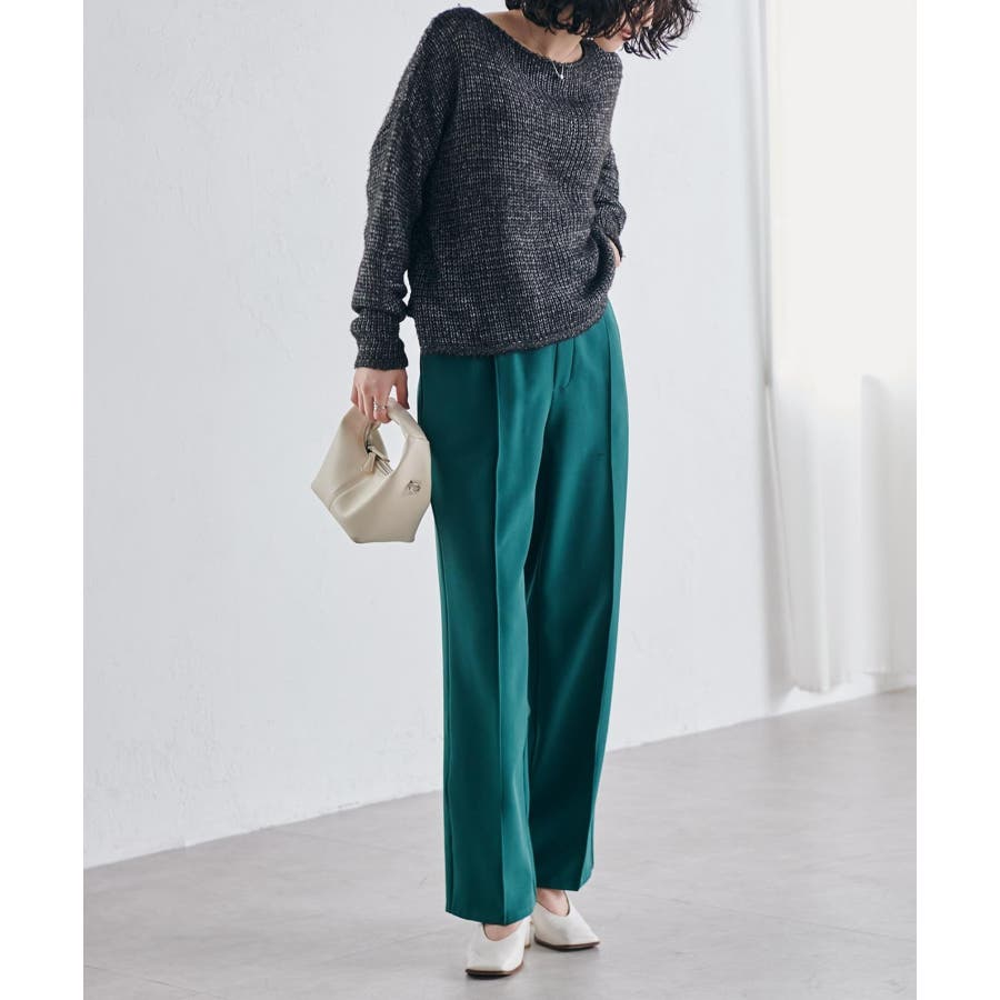 落ち着いた色のニットやスウェットと合わせてパンツのカラーを楽しむのがおすすめ!