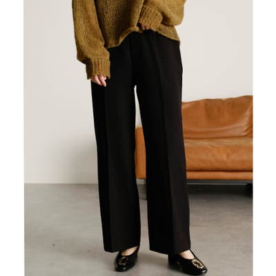 トレンドのストレートワイドパンツを裏起毛素材で暖かく♪