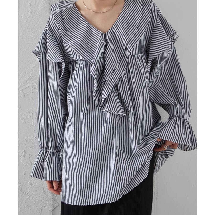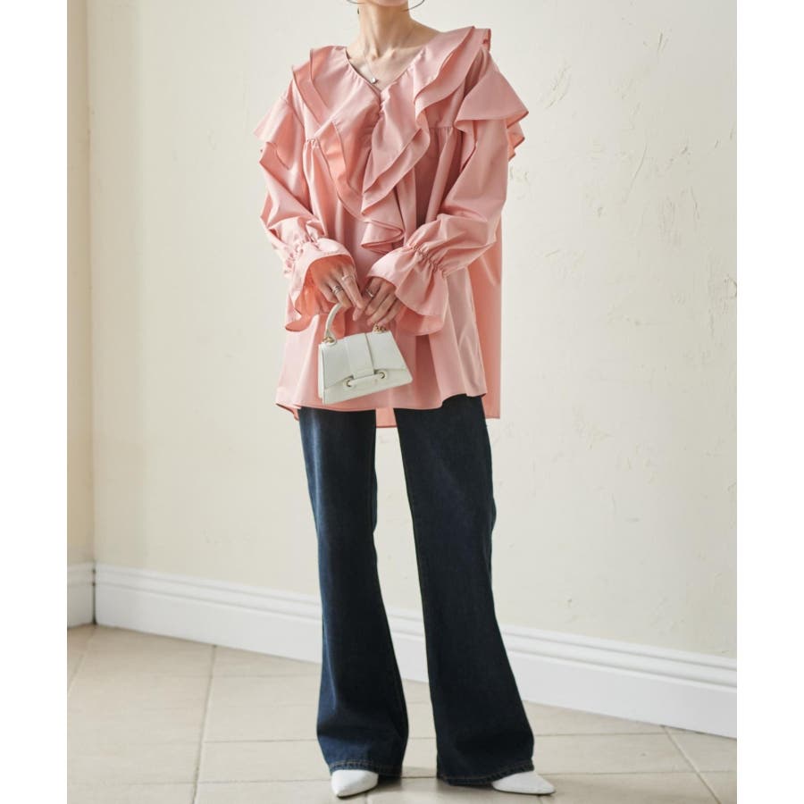 ふんわりとしたフリルデザインが印象的なブラウス♪