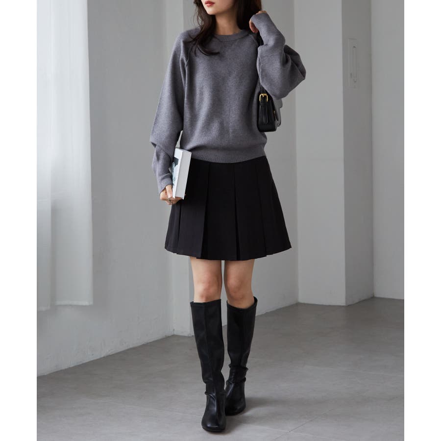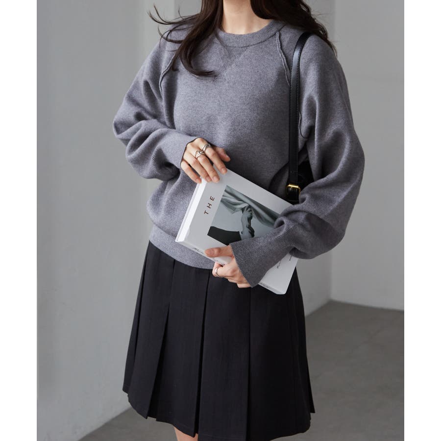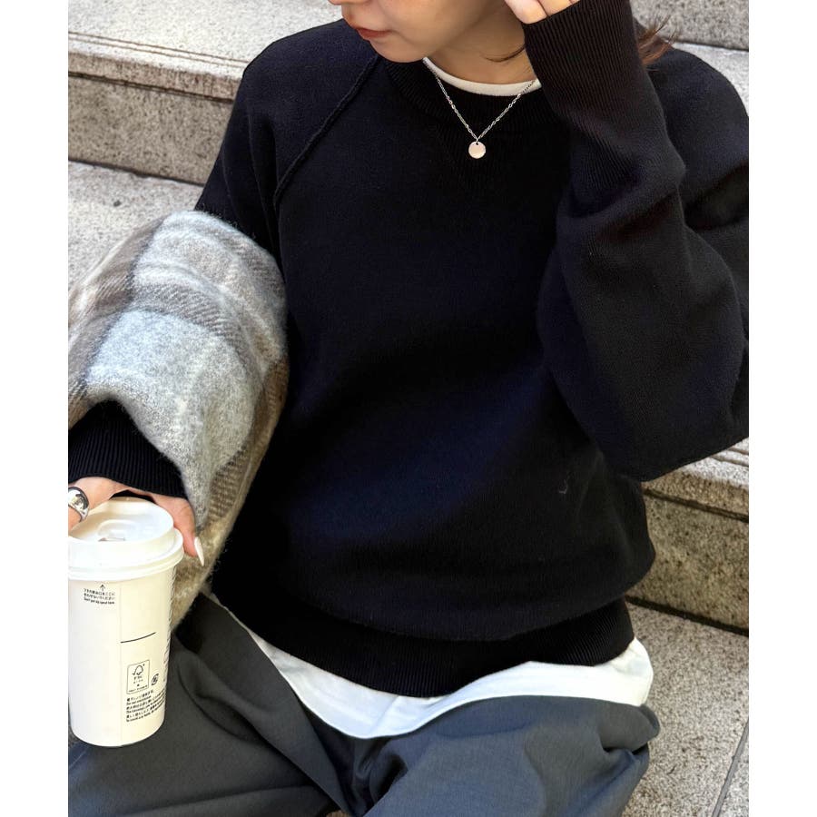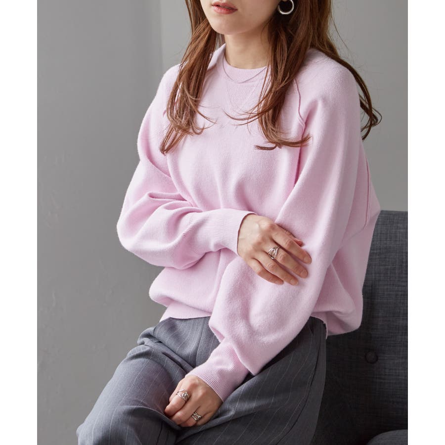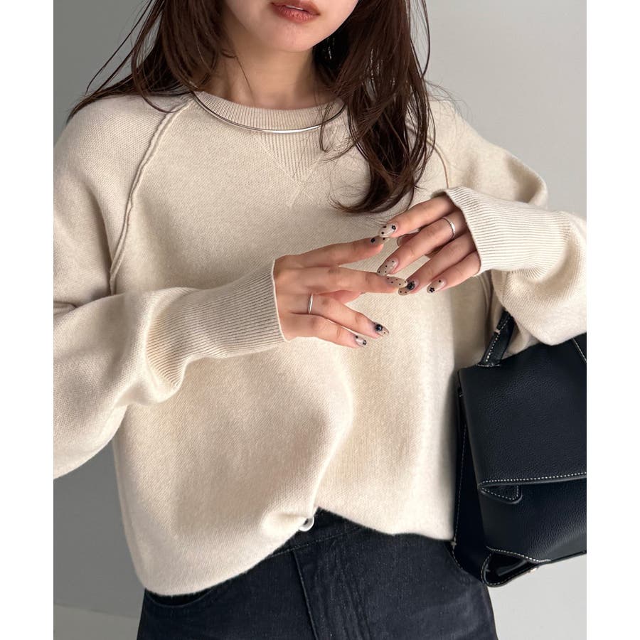素材感とネックデザインでスウェット見栄を叶えたニットです。