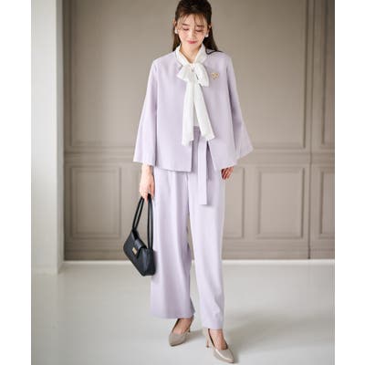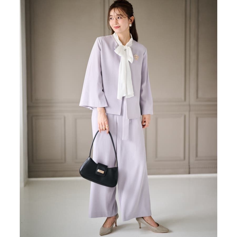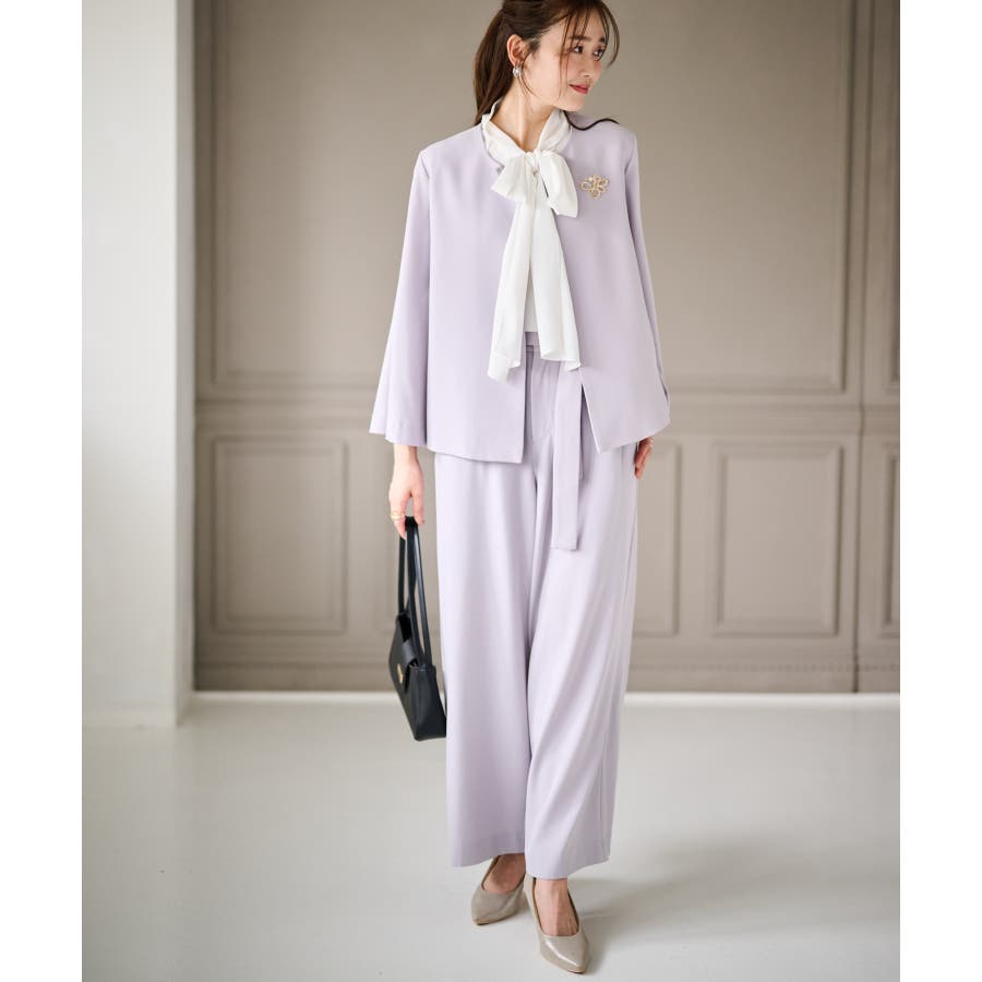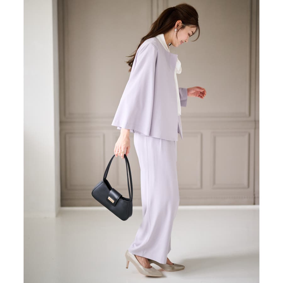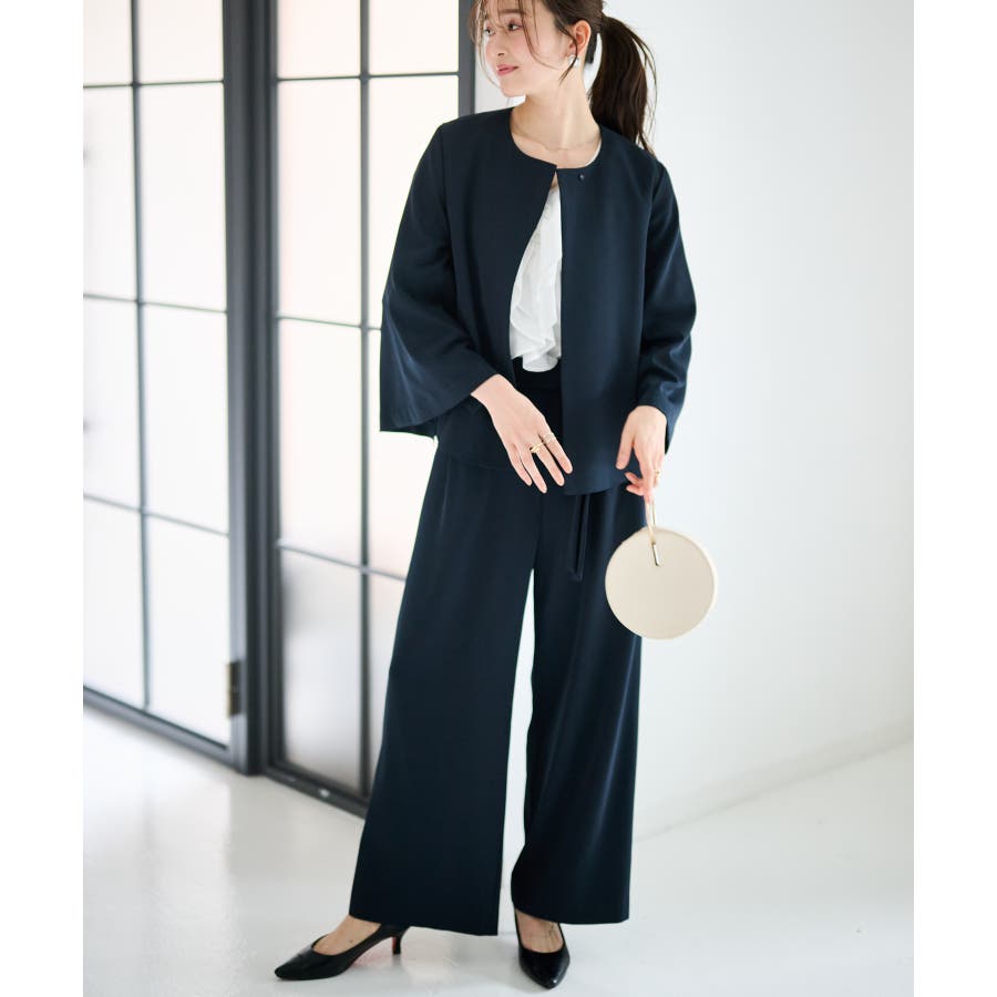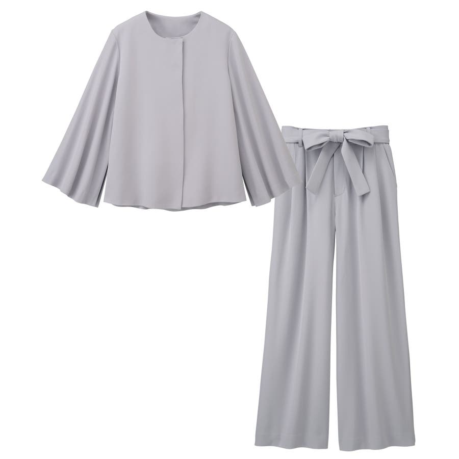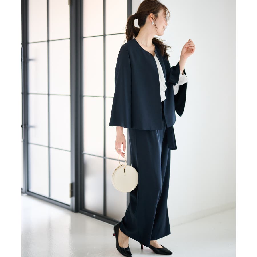 セットのパンツは脚長見えにこだわった美ラインワイドパンツ。