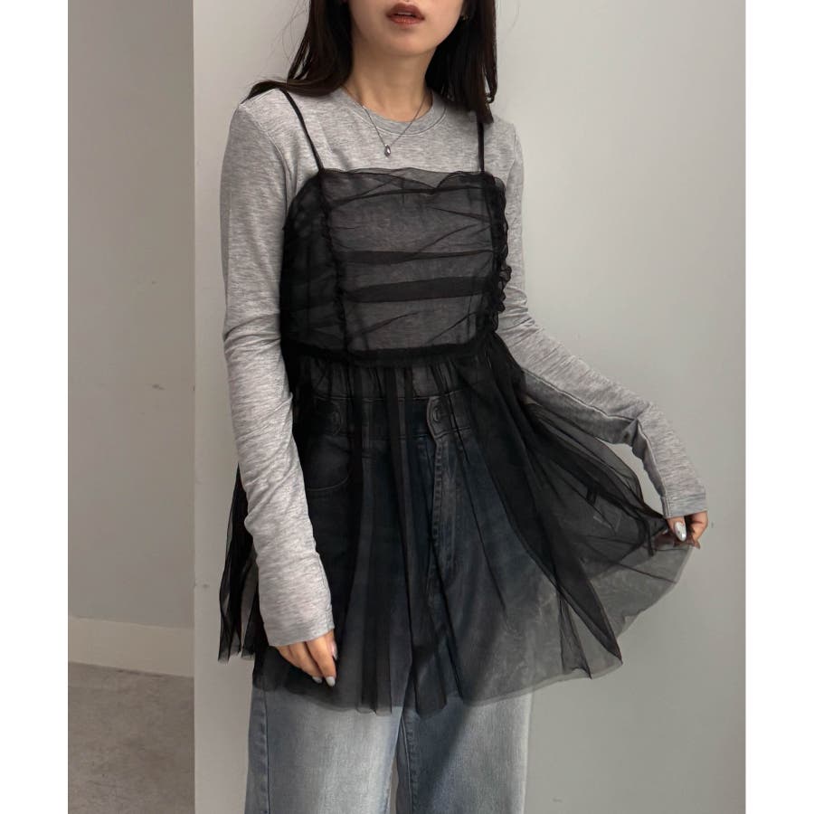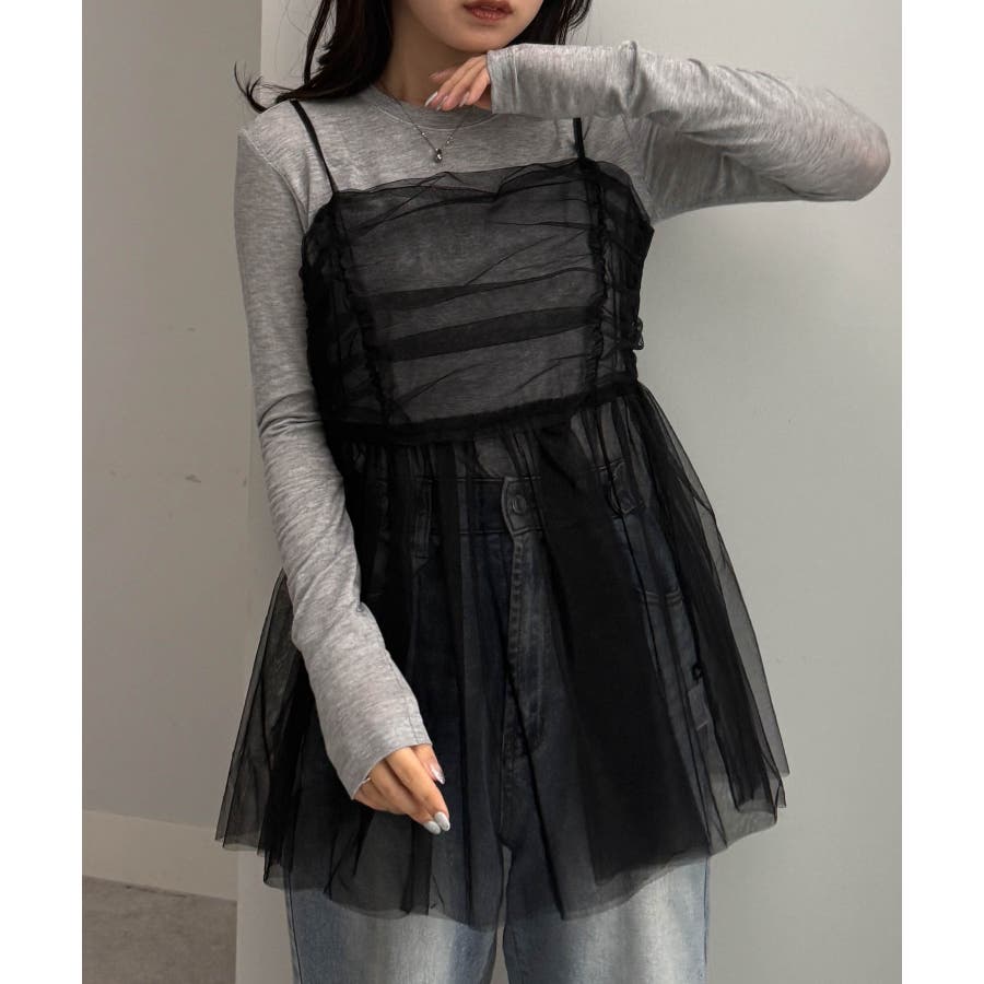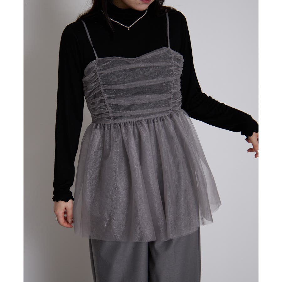 ボリュームが可愛いビスチェデザインのフリルペプラムキャミ