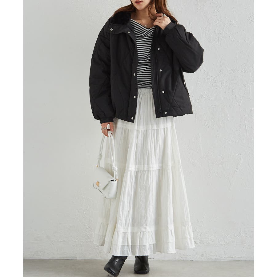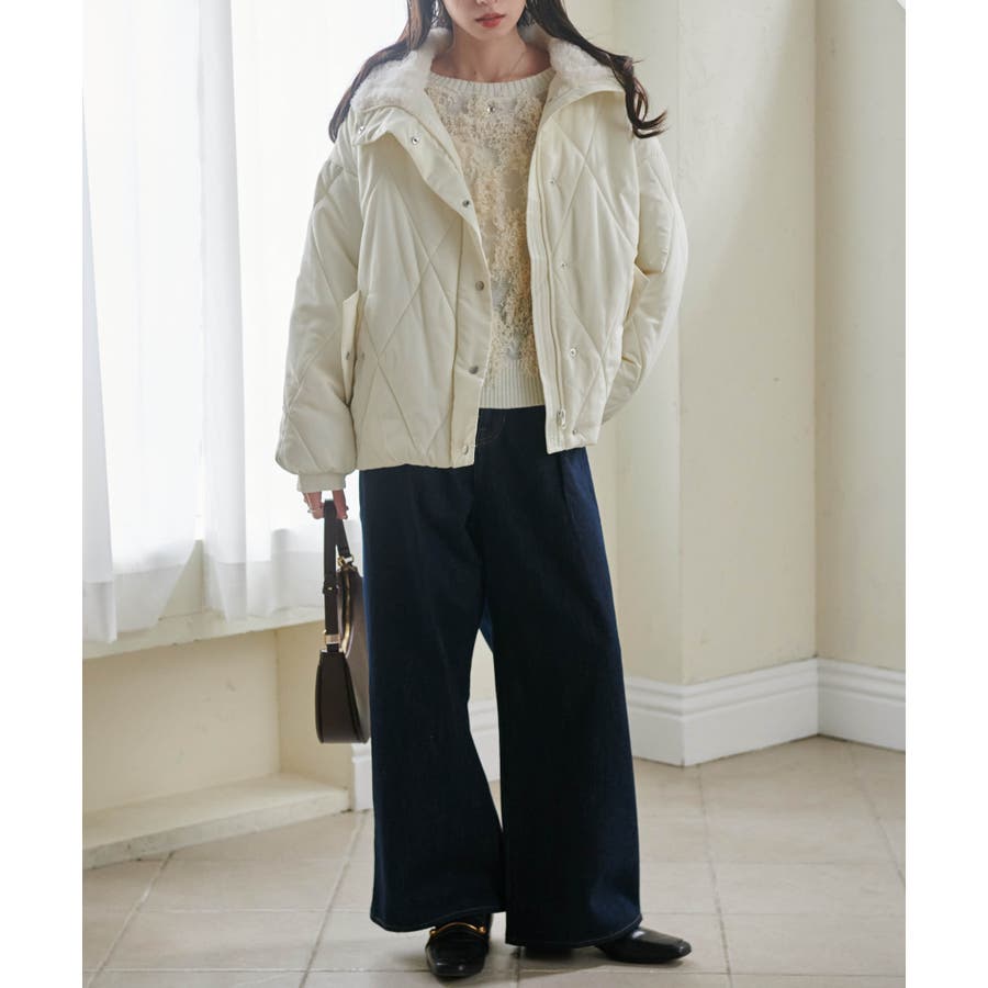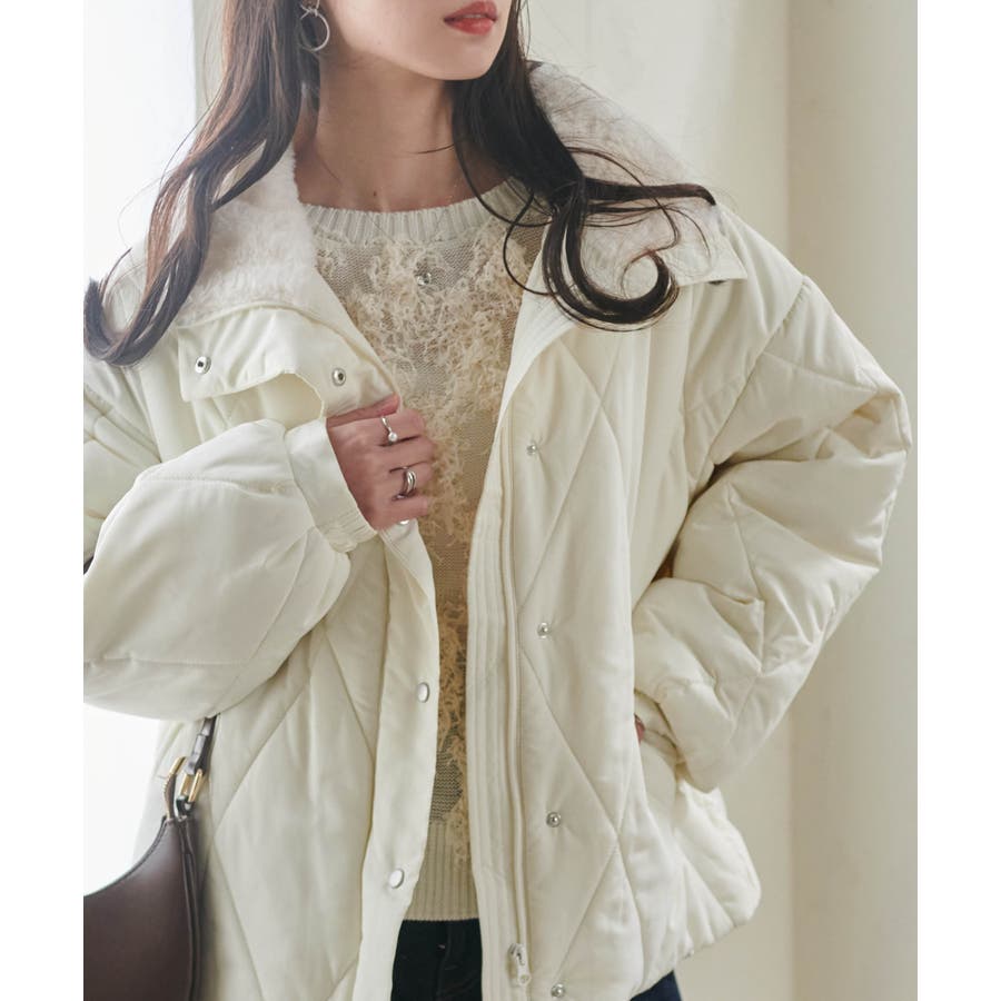 衿の内側ににふわふわのフェイクファーをあしらったブルゾン。