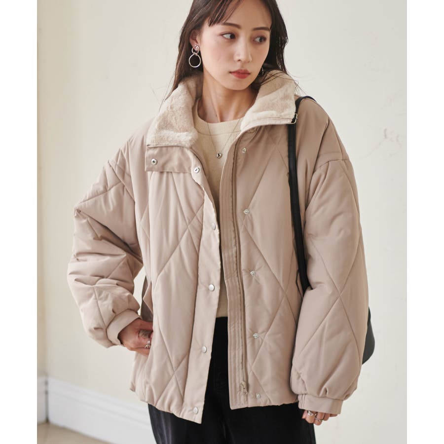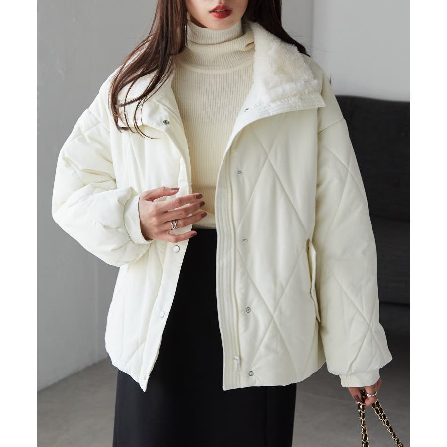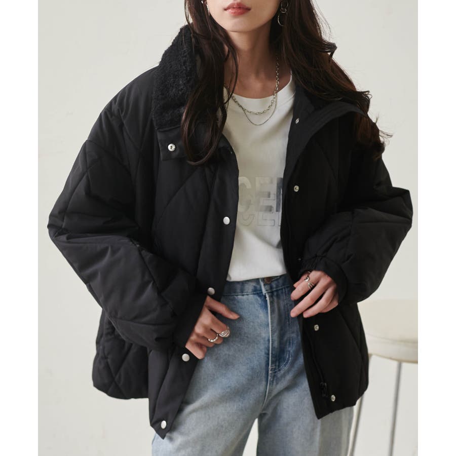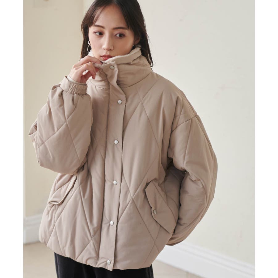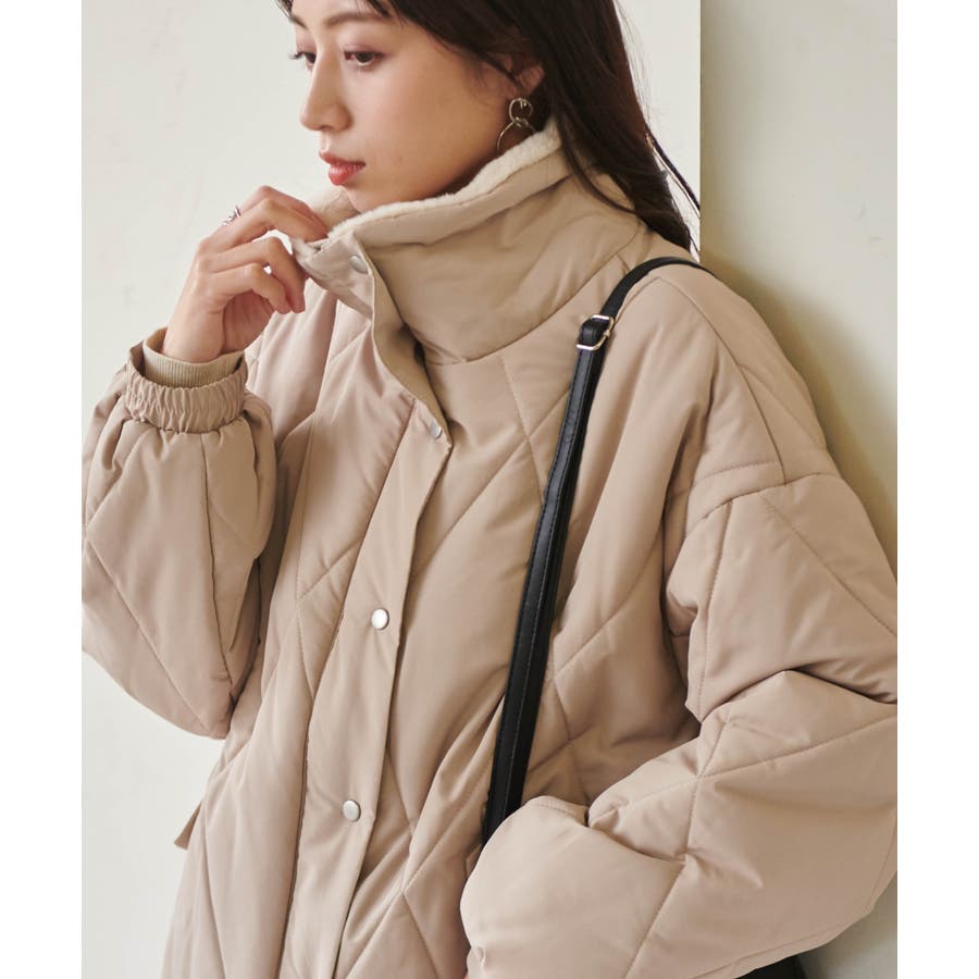・スタンドカラーのキルトデザイン・オーバーサイズシルエット・中わたであったかくて軽い