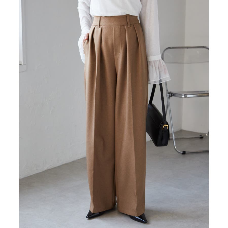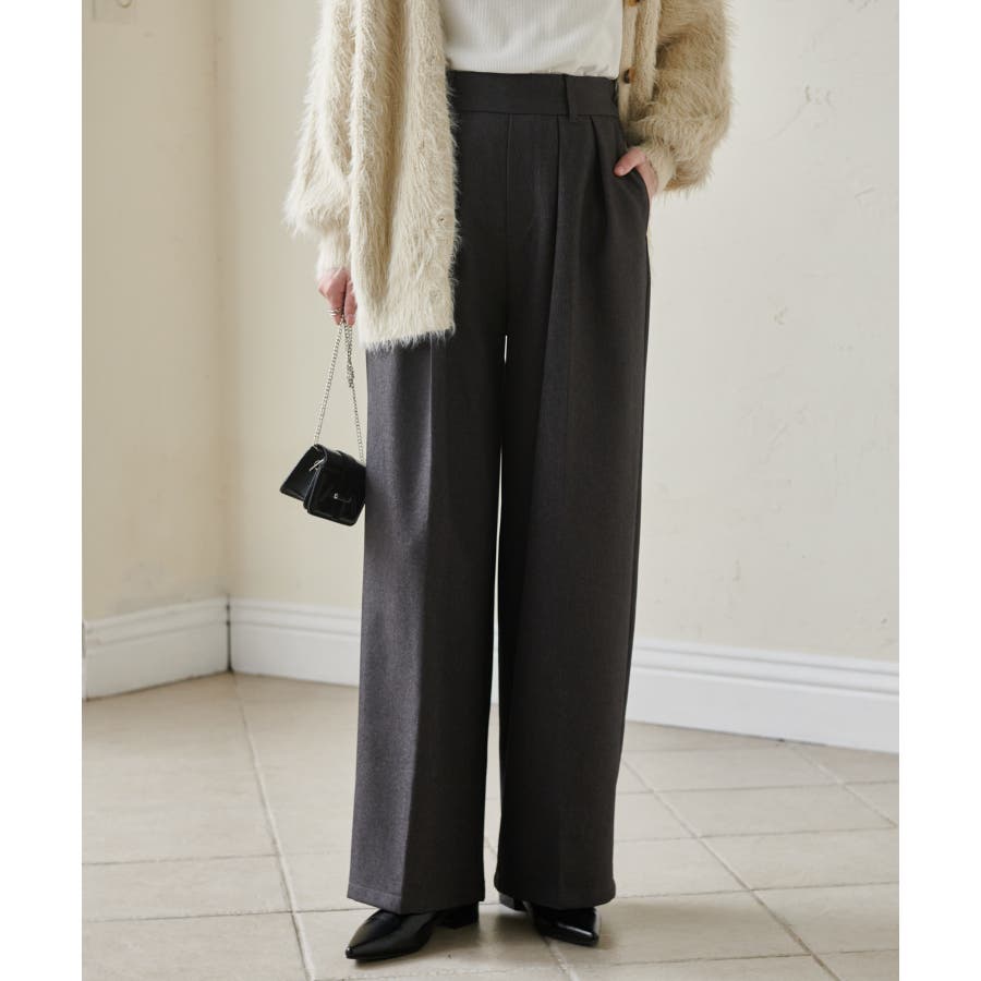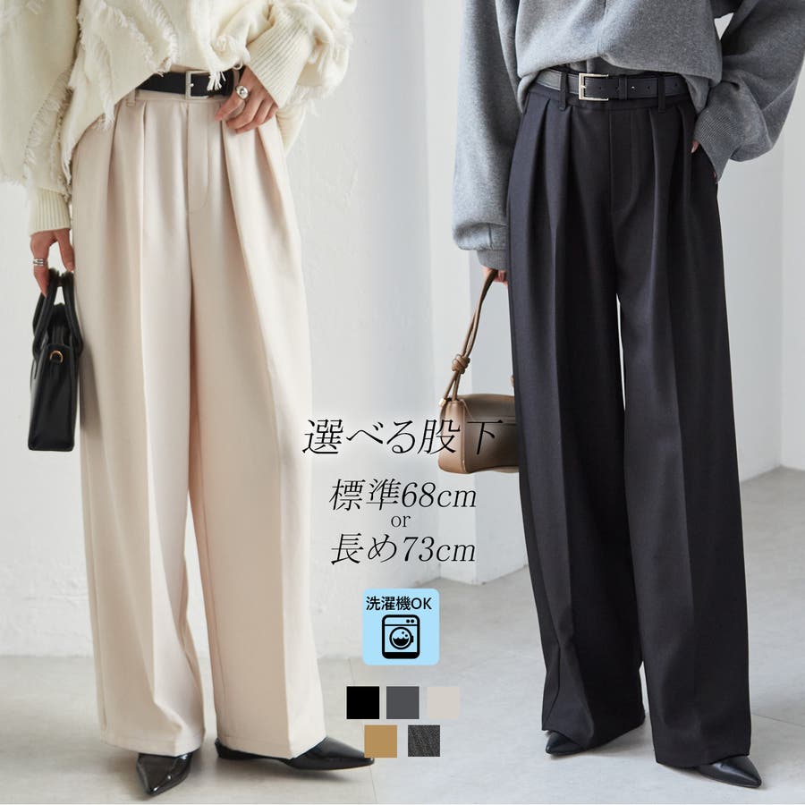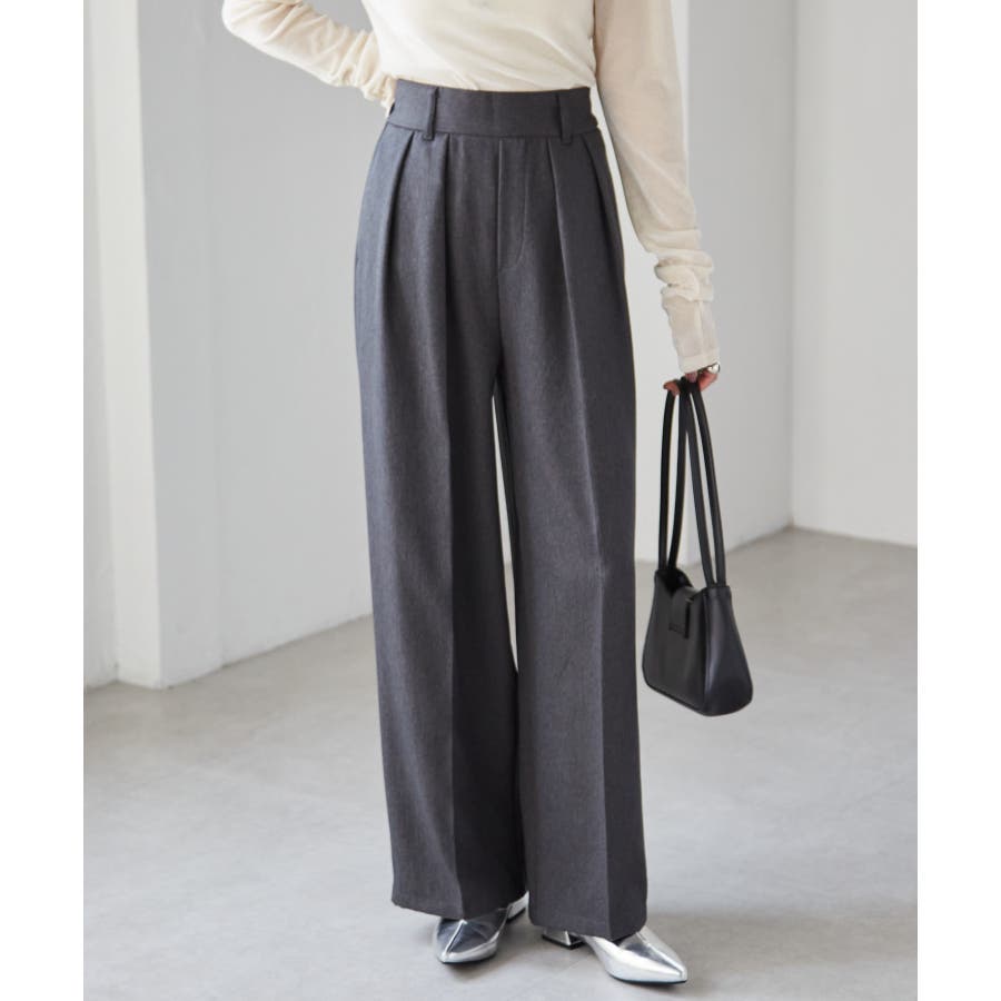 【選べる股下】ウール調センタープレスタックワイドパンツ