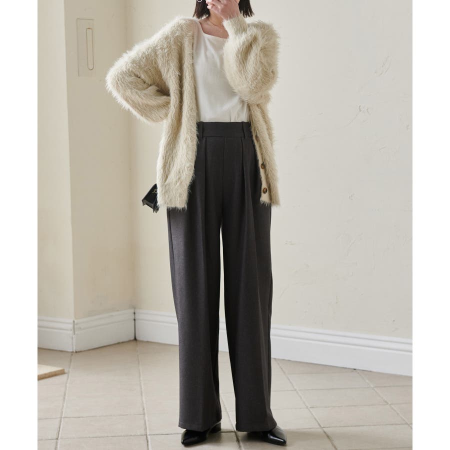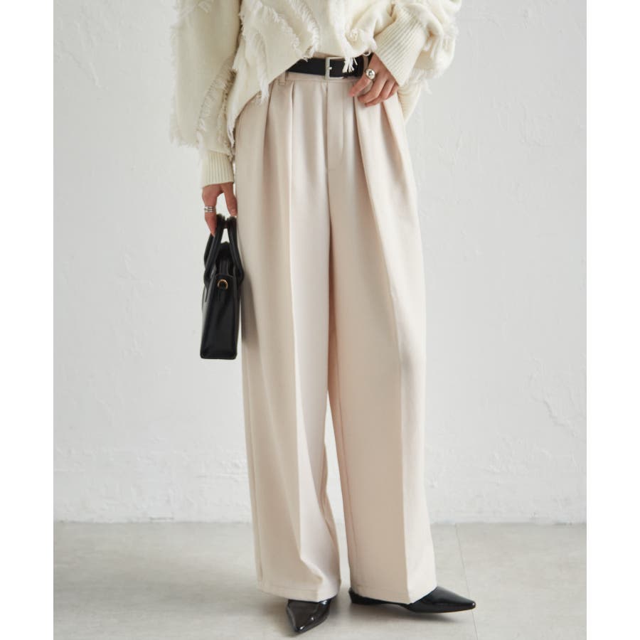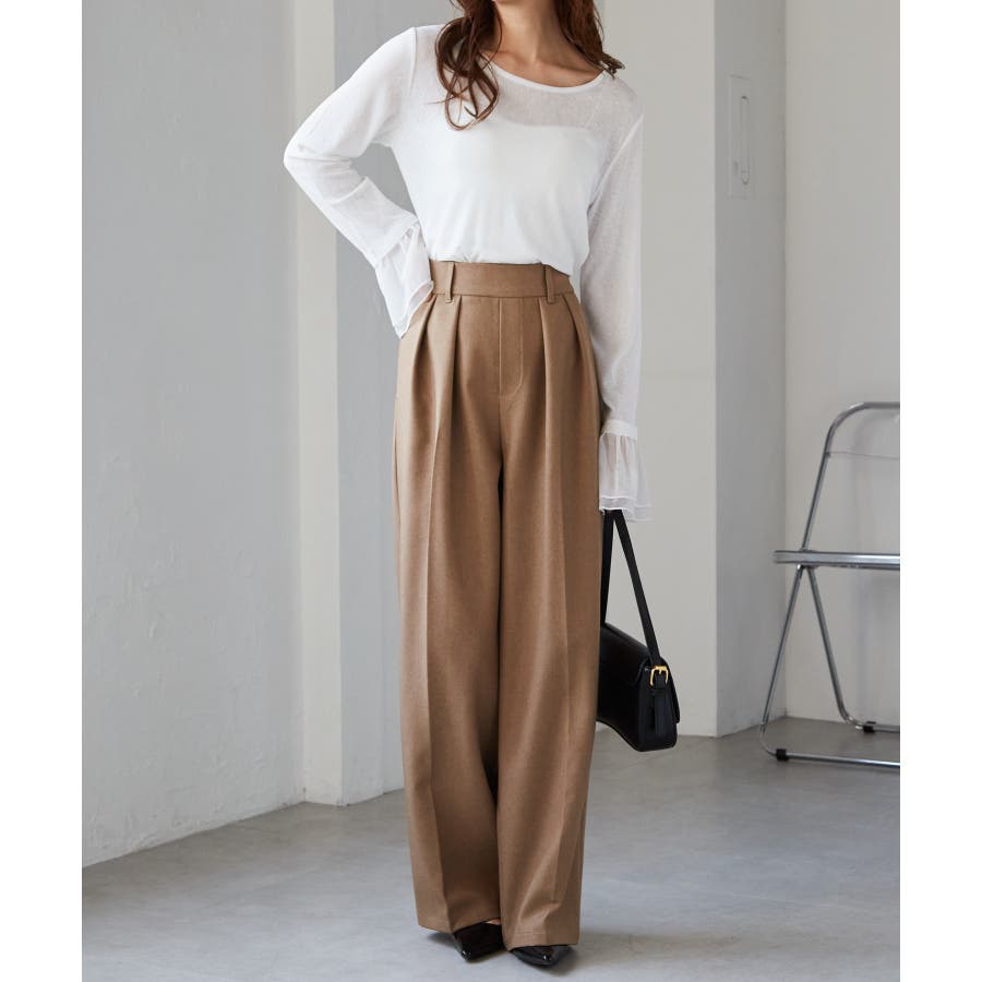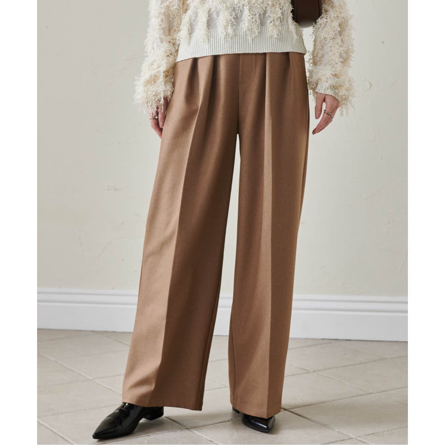 【選べる股下】ウール調センタープレスタックワイドパンツ
