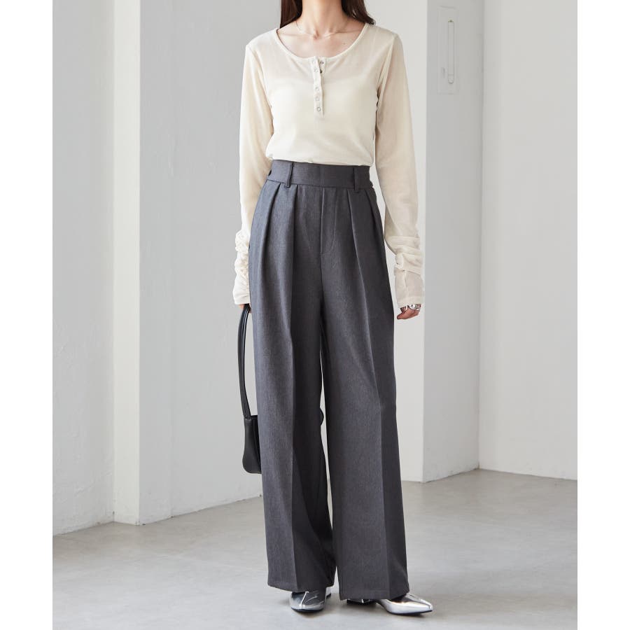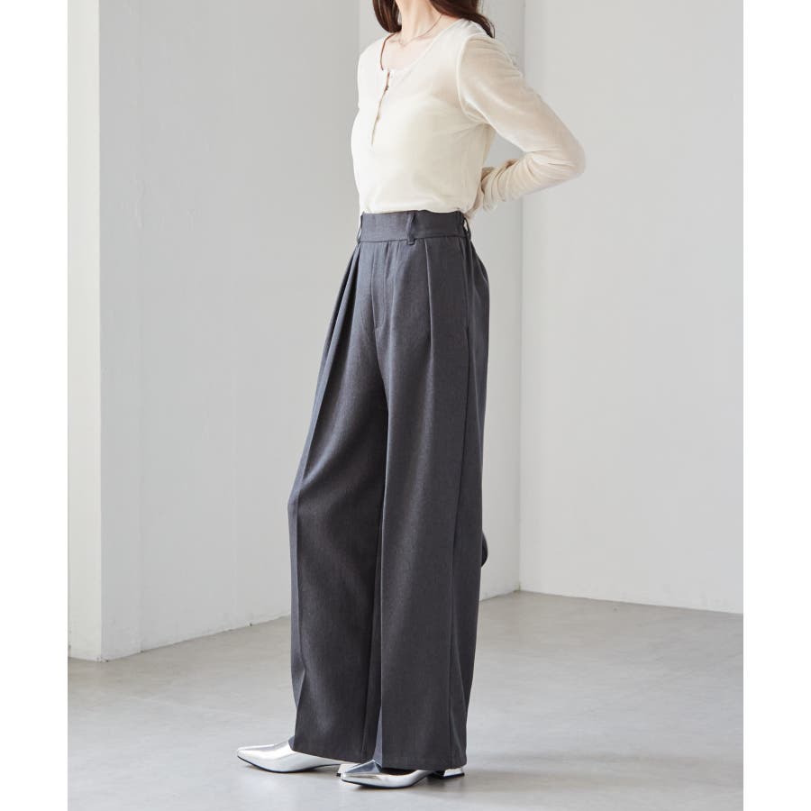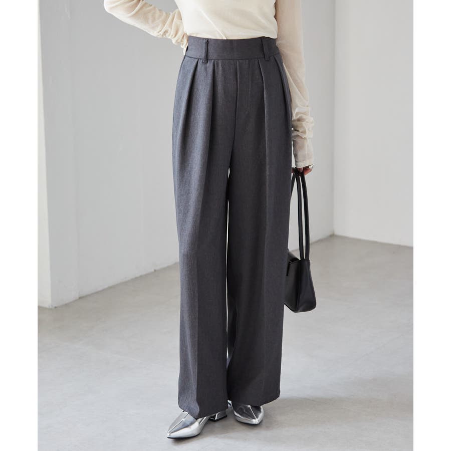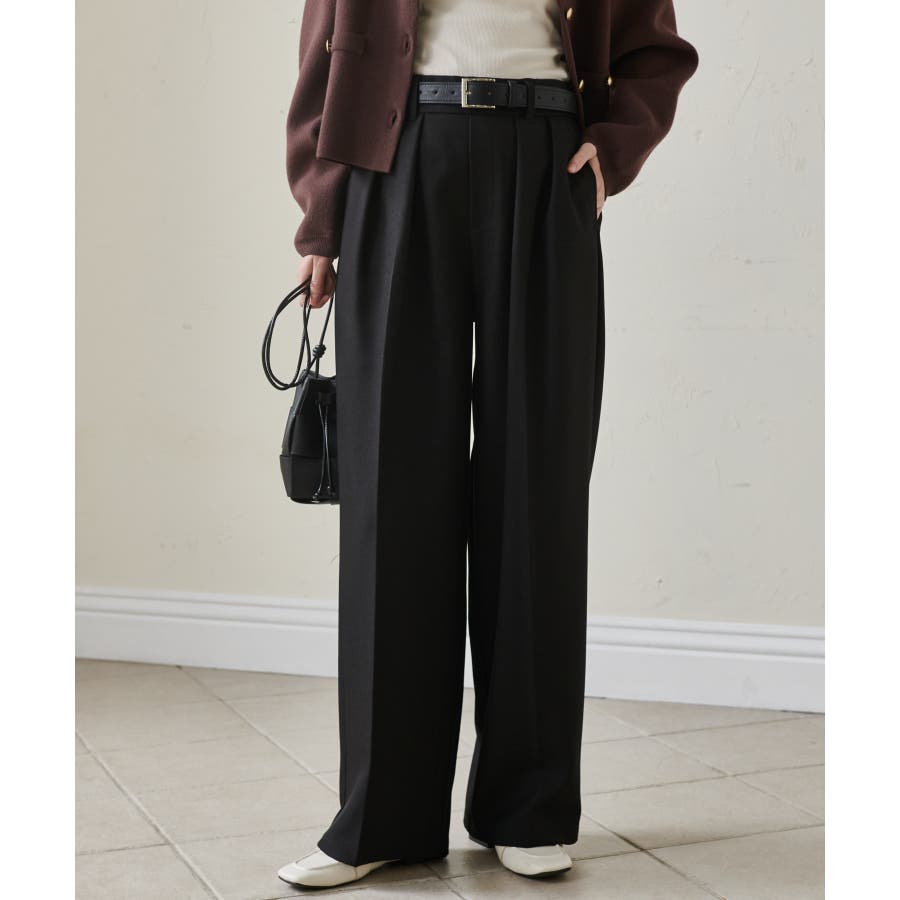 腰回りはすっきり華奢見せ&スタイルアップ効果のあるウエストラインが魅力で、こだわりの大きなタックが綺麗なシルエットを演出します。