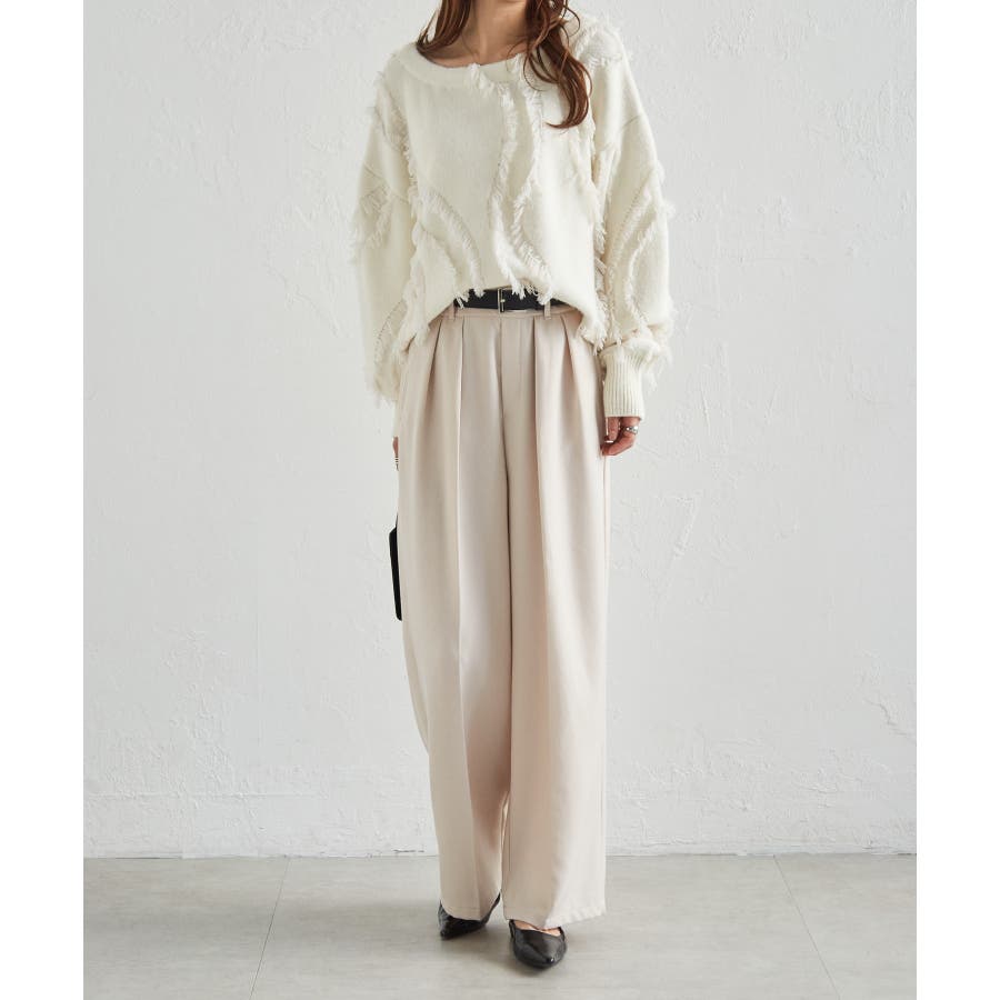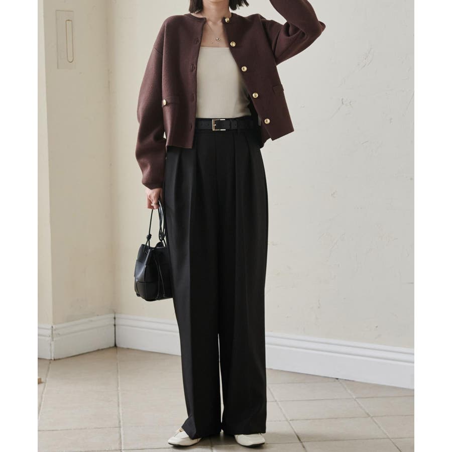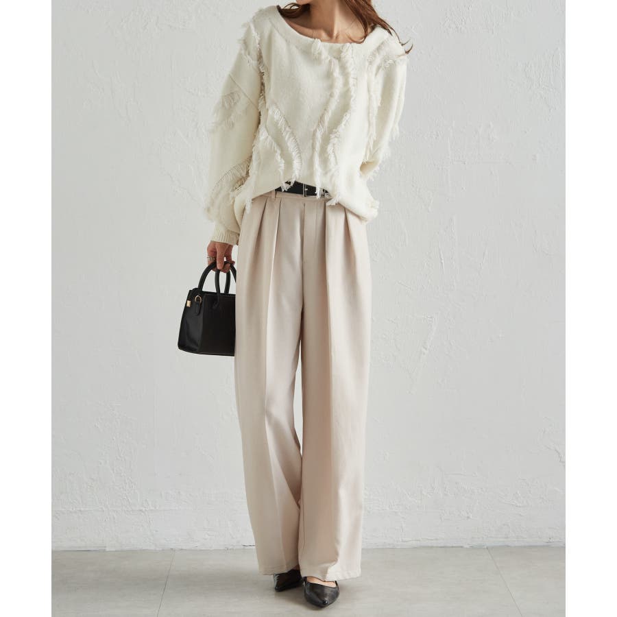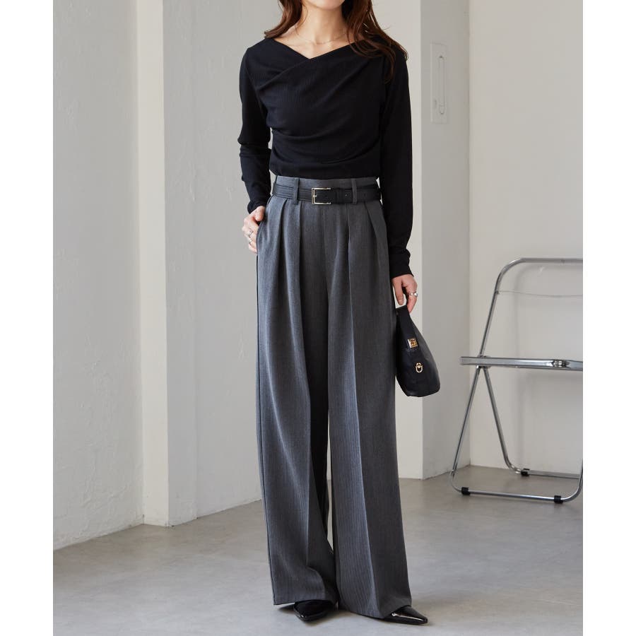腰回りはすっきり華奢見せ&スタイルアップ効果のあるウエストラインが魅力で、こだわりの大きなタックが綺麗なシルエットを演出します。
