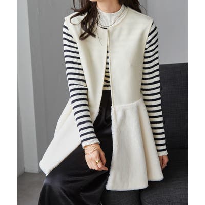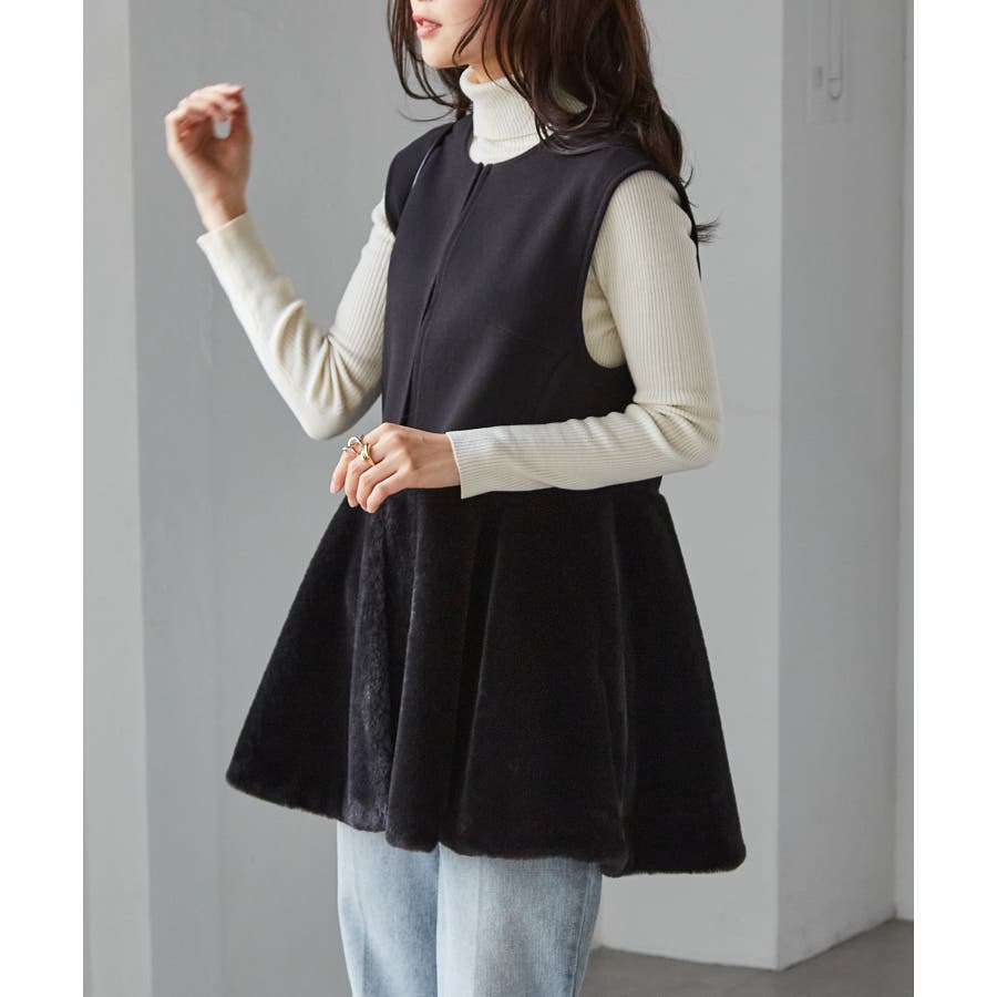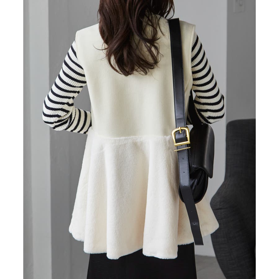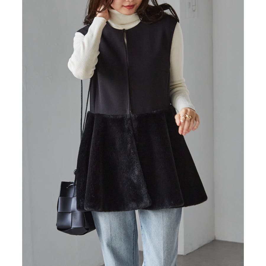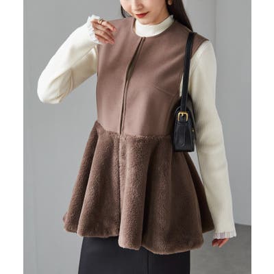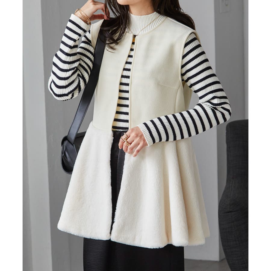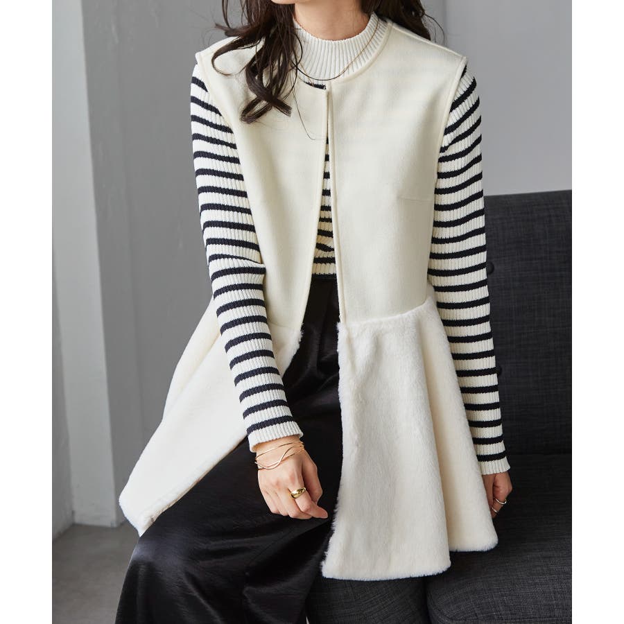 秋冬コーデにニュアンスを生む女らしいペプラムファー切替ジレでトレンドコーデに♪