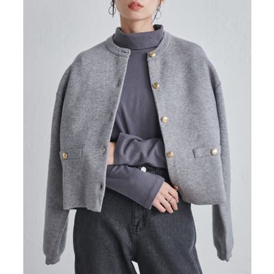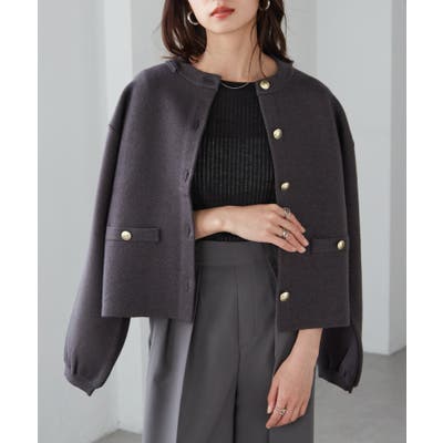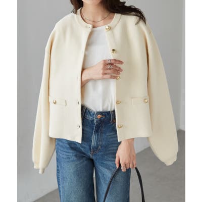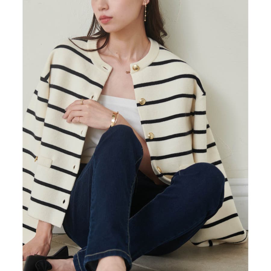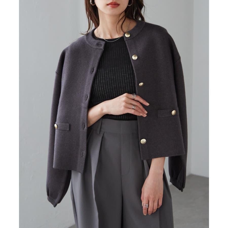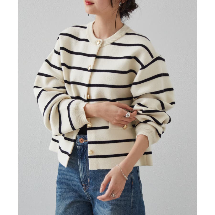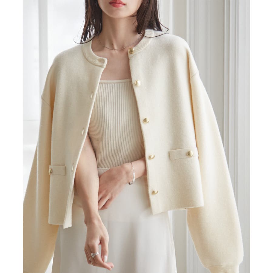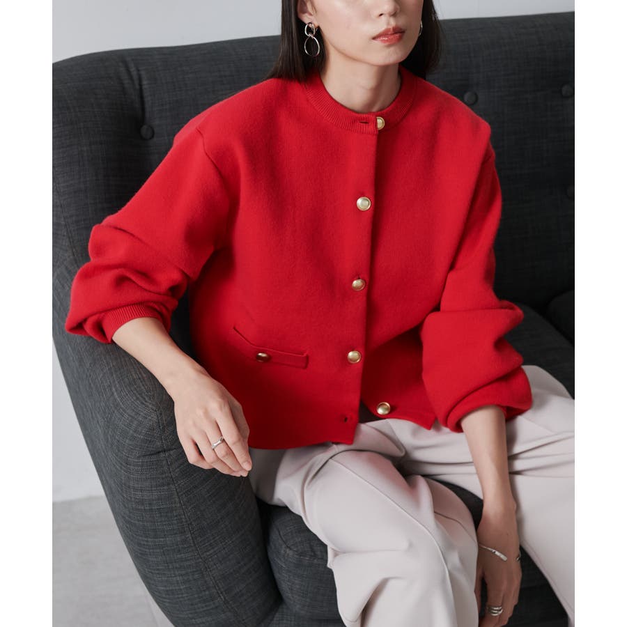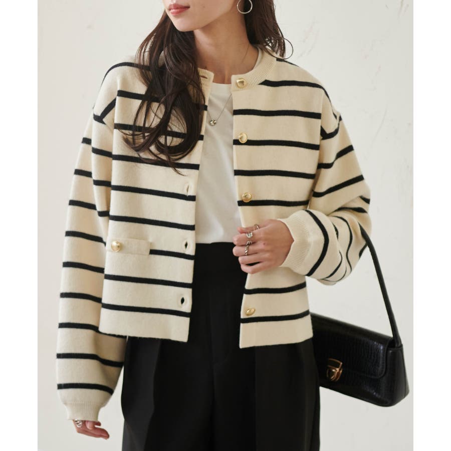 ゴールド調ボタンがアクセントになり、ジャケットのようにも着用できる優秀カーディガン。