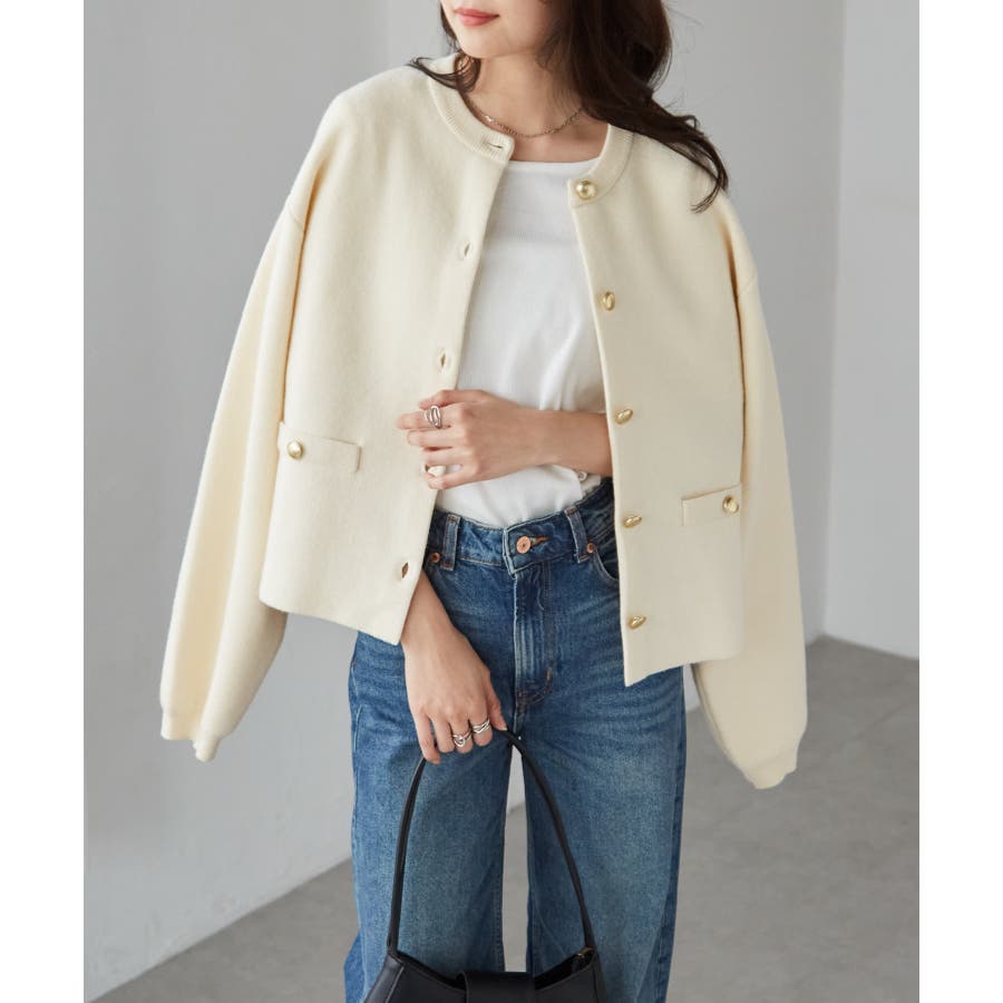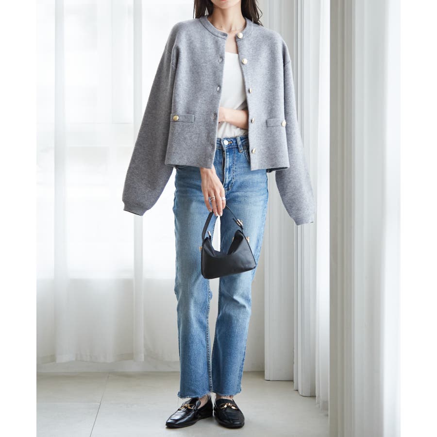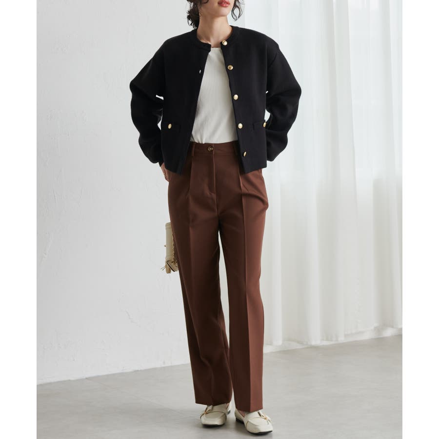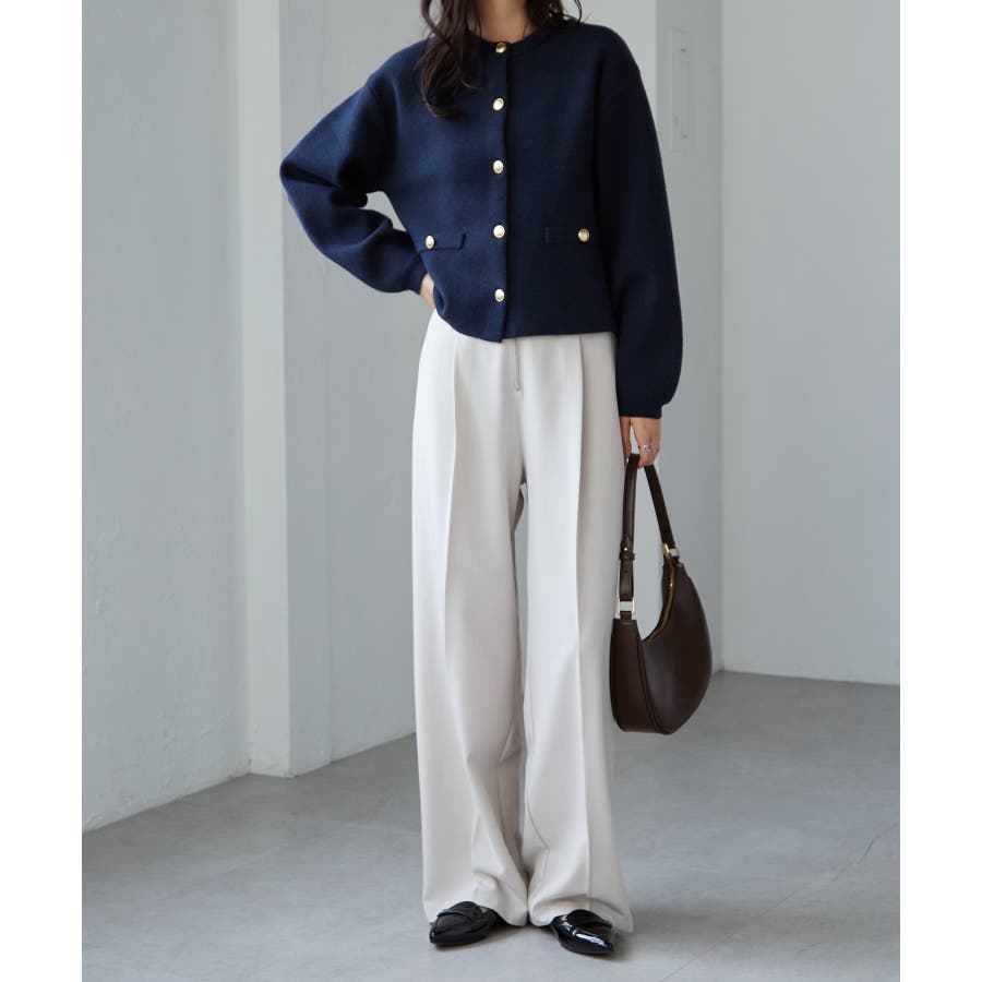 金ボタンのアクセントがありつつシルエットはシンプルなので、どんなボトムと合わせてもサマになります。