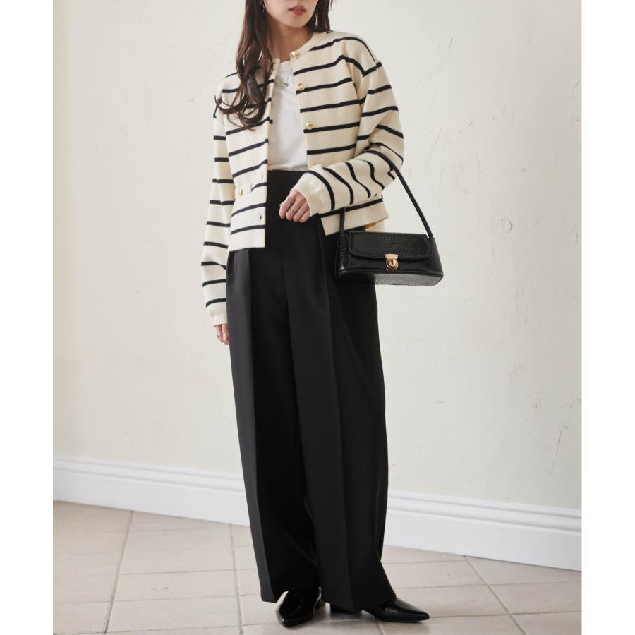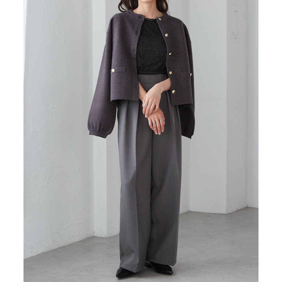 ショート丈なのでワイドパンツとの相性ばっちりです。