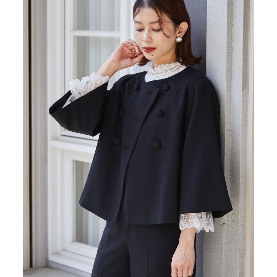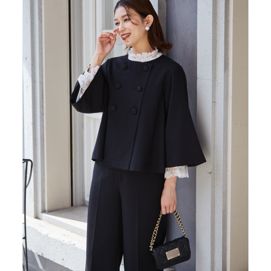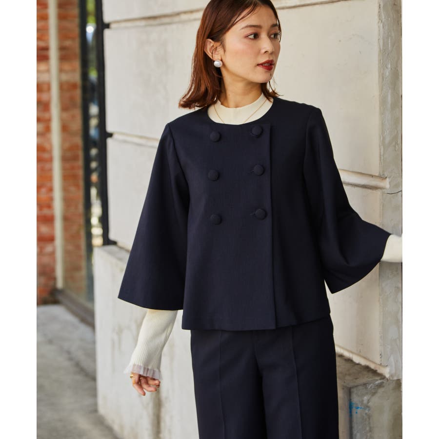 ・衿元スッキリでジャケットの堅苦しさがなく、優しい印象に。