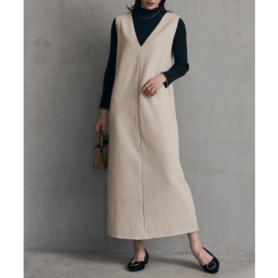 1枚でサマになる主役級の裏ベロアの深Vネックロングジャンパースカート