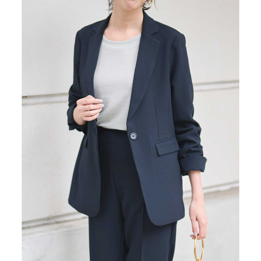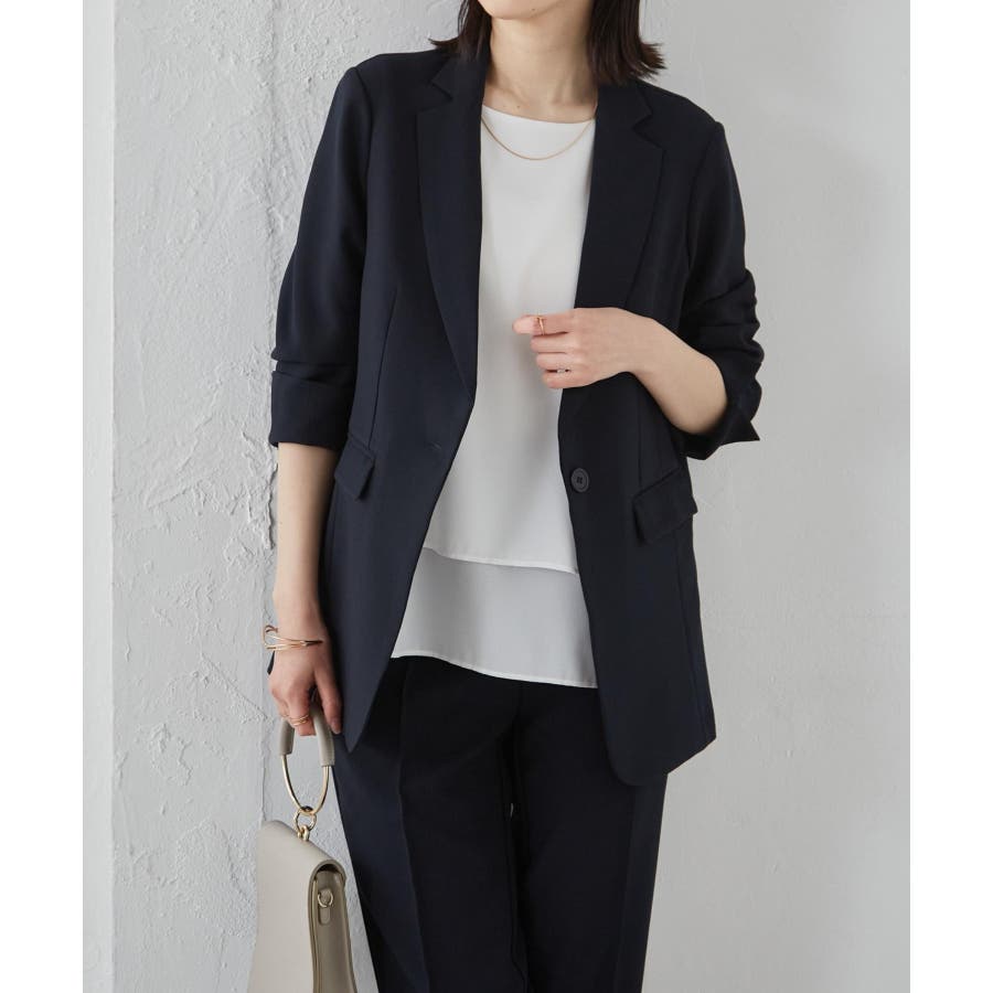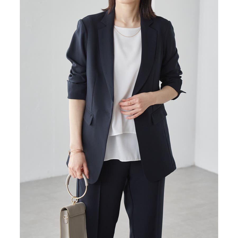 パンツやワンピースとのセットアップの装いでスラリと女性らしい印象に♪