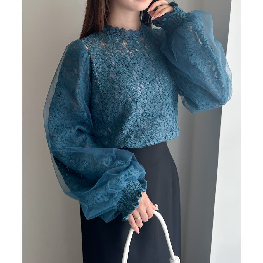 チュールドッキングフラワーレースキャンディースリーブブラウス