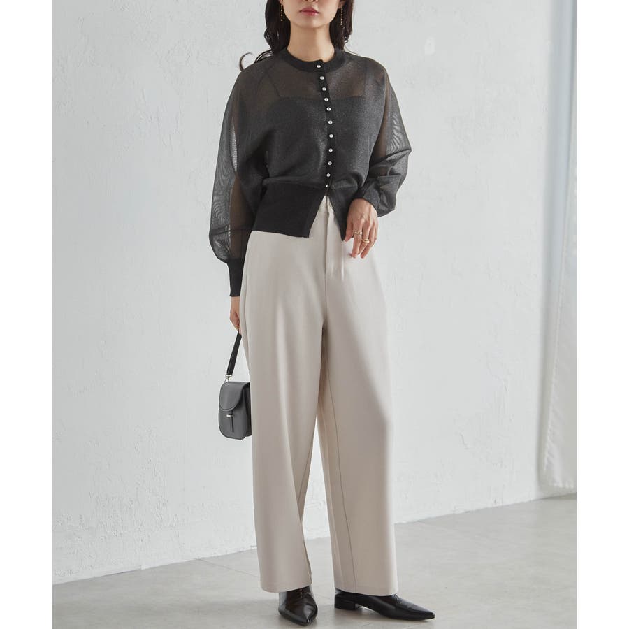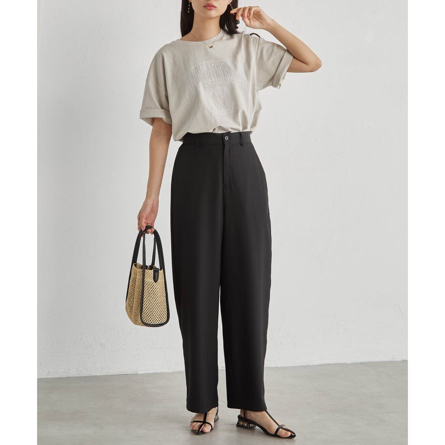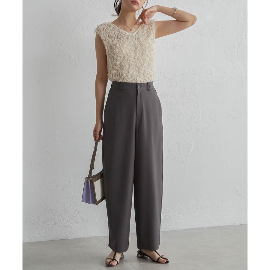 シンプルなパンツなので、ボリューム感のあるトップスを合わせるのがオススメ◎