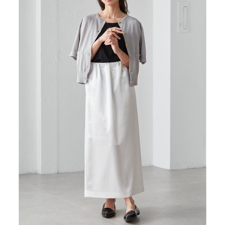 上品さを演出してくれる素材なので、きちんと感のあるボトムと合わせればお仕事にもマッチします。